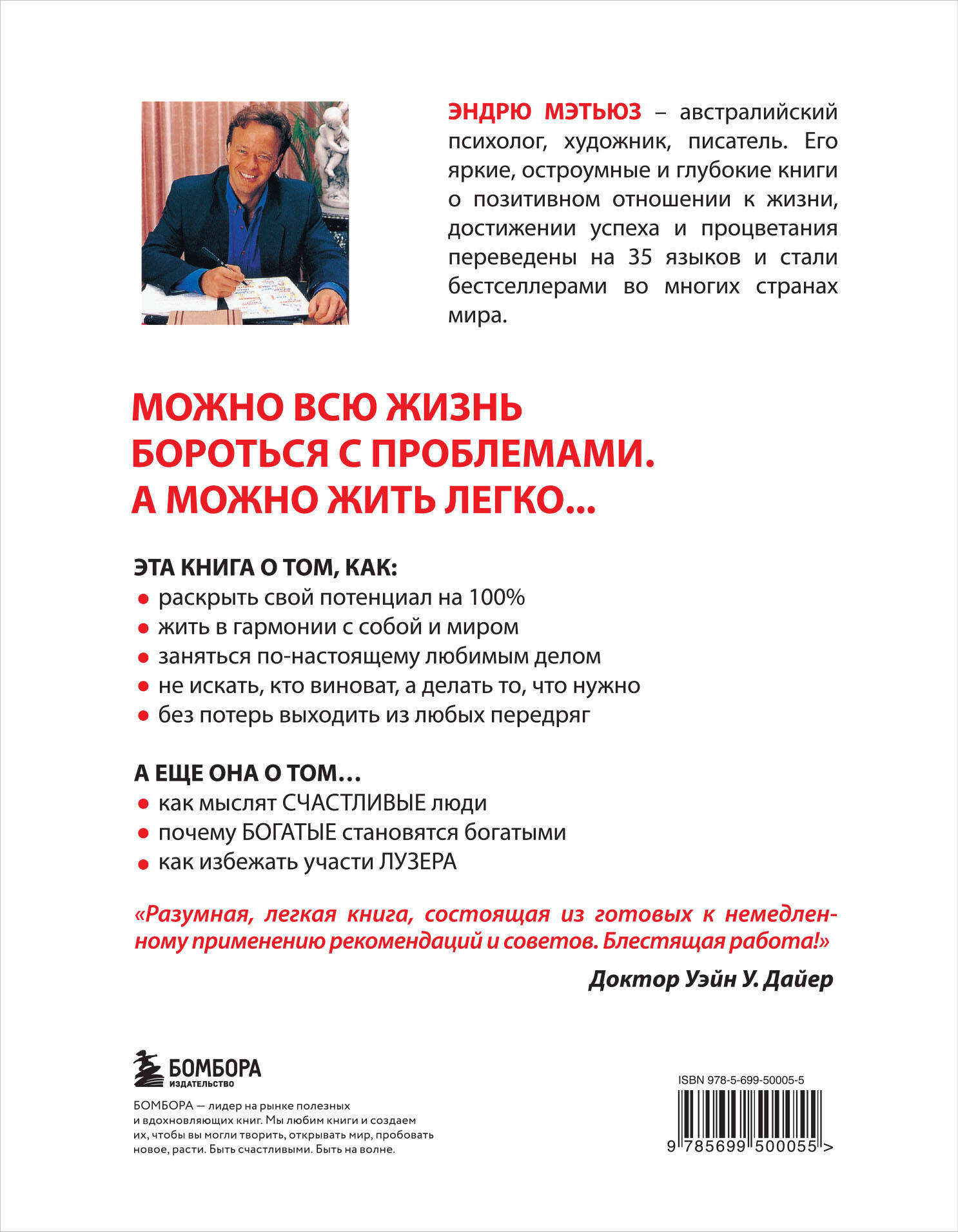 МИРОВОЙ БЕСТСЕЛЛЕР. ГЛАВНАЯ КНИГА АВСТРАЛИЙСКОГО ПСИХОЛОГА ЭНДРЮ МЭТЬЮЗА. СУММАРНЫЙ ТИРАЖ В РОССИИ БОЛЕЕ 100 000 ЭКЗЕМПЛЯРОВ. Лучшее лекарство от стресса, депрессии, просто плохого настроения. Изящный остроумный текст в сопровождении «фирменных» рисунков автора поможет вам добиться успеха в любви, дружбе, карьере, учебе и т.д. Вы поймете, что любая проблема имеет решение, а если решение запаздывает, все равно можно идти по жизни легко и радостно. Четкие и нестандартные рекомендации автора подкрепляются реальными историями, которые можно «примерить» на себя и лишний раз убедиться, какая все-таки классная штука жизнь!| Издательство | ООО "Издательство "Эксмо" |