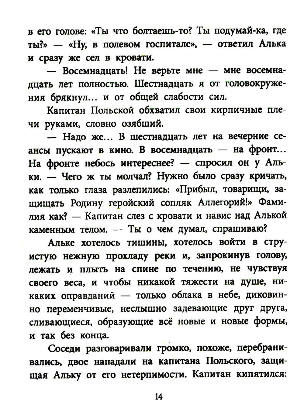 Альке шестнадцать. На фронт ушли его учителя, знакомые, даже тренер - молодая и красивая девушка-гимнастка. Значит, и ему на фронте самое место. И он, раздобыв на рынке форму не по размеру, тайком пробирается в военный эшелон. Страха перед войной Алька уже не испытывает, ведь он из блокадного Ленинграда и там навидался всякого. Он боится, что его не пустят воевать. К 80-летию Победы в Великой Отечественной войне. Для среднего школьного возраста.| Издательство | Детская литература |