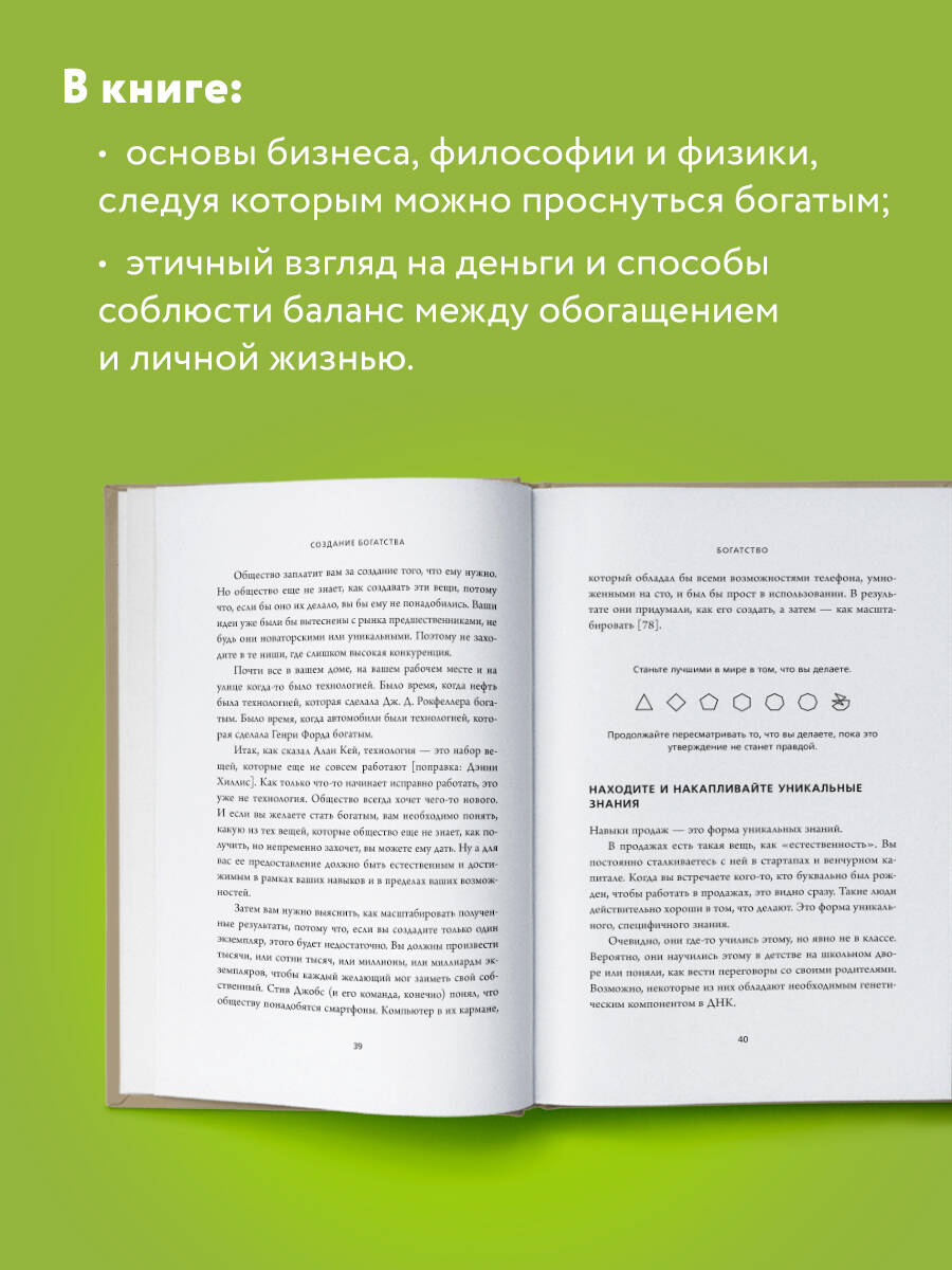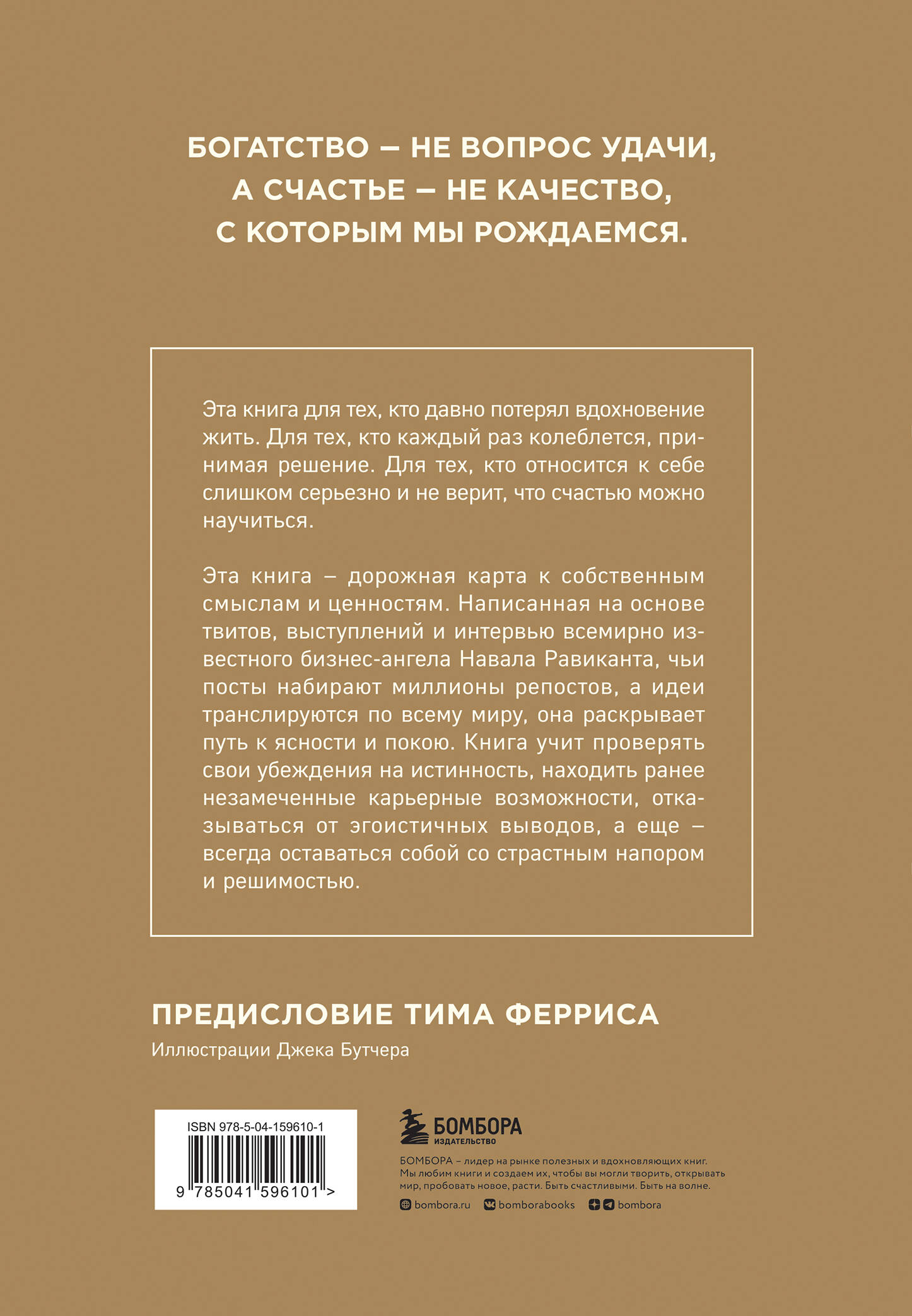 Навал Равикант - всемирно известный предприниматель и ангел-инвестор, создатель AngelList, одной из крупнейших площадок для стартапов. Навал лично успешно инвестировал в таких гигантов, как Uber, Twitter, Wish и сотни других, еще на старте их развития. В 2017 году он занял 4-е место списка CoinDesk как «самый влиятельный человек». А еще он тот самый «философ из Твиттера» с миллионами подписчиков, который скромно называет себя «героем для юных мальчиков-гиков». В сумасшедшей гонке за богатством и успехом давно нет места главному - жизни. Жизни, наполненной счастьем, гармонией и изобилием. В этой книге нет историй головокружительного успеха или внезапно улыбнувшейся удачи. Здесь ответы только на самые волнующие вопросы: как честность и принципы приведут к богатству, почему то, как все работают, уже не работает и, главное - сколько нулей нужно для счастья? Равикант виртуозно объясняет простыми словами фундаментальные основы бизнеса, философии и физики, следуя которым можно проснуться богатым. И это не просто слова. Все сказанное Навал испробовал на себе. И это сработало. Так почему бы не попробовать и вам?| Издательство | ООО "Издательство "Эксмо" |