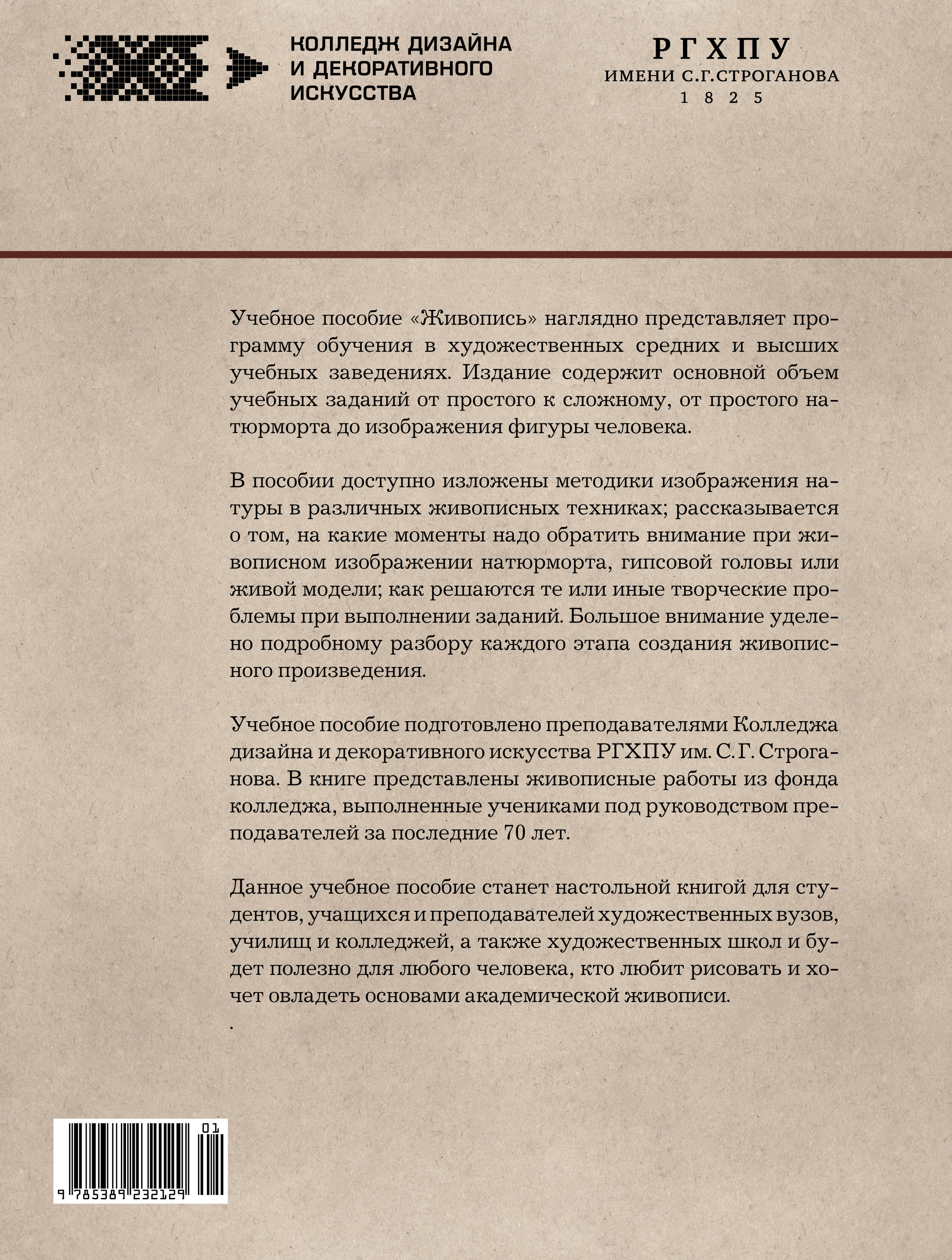 Издание предназначено для обучающихся в художественных училищах и колледжах, вузах, а также художественных школах. В учебном пособии собраны основные методы и основы изобразительной грамоты по живописи, разложенные на этапы по каждому заданию. Пособие также включает в себя сборник статей, написанных преподавателями КДДИ РГХПУ им. С. Г. Строганова. Работы, включенные в учебное пособие, охватывают полувековой временной период: с 1947 (МХПТ им. М. И. Калинина) по 2023 г. (КДДИ РГХПУ им. С. Г. Строганова).| Издательство | Азбука-Аттикус Издат.группа ООО |