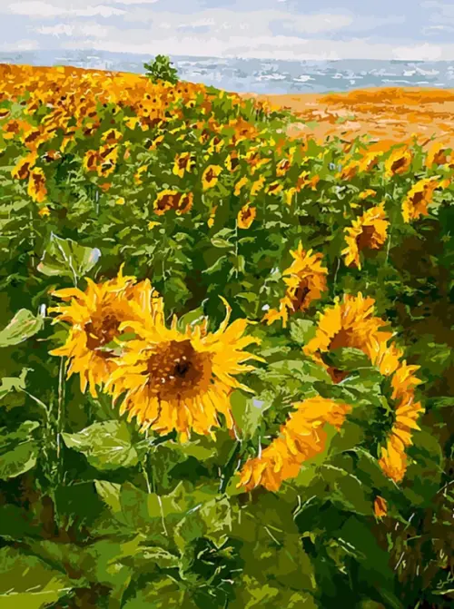 Основа работы - хлопковый холст, на поверхность которого нанесена пронумерованная схема картины, каждому номеру на схеме соответствует свой цвет акриловой краски. Выбирайте сегмент на схеме с которого начнете работу и приступайте, да кстати рисовать можно начинать с любого места, с угла, от центра или от просто приглянувшегося участка на схеме. Это ваша работа и решать вам. Для закрашивания маленьких участков используйте тонкие кисточки, а для больших лучше взять и самую толстую кисточку. Готовую картину можно оформить в багетную раму и закрепить на стене.
