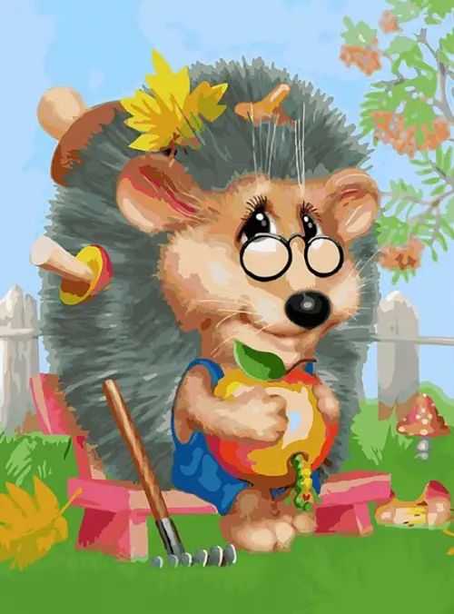 Живопись на холсте. Ёжик-садовод, 30х40 см