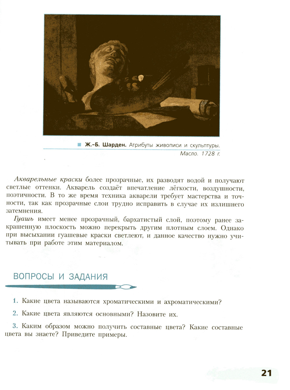 Учебное пособие адресовано учащимся художественных школ и школ искусств. Живопись в пособии рассматривается как искусство цвета. Раскрыты основы цветоведения: ахроматические и хроматические, основные и составные цвета; приёмы работы акварелью и гуашью, их технические и колористические особенности; цветовой круг, холодные и тёплые цвета; цветовой тон, насыщенность и светлота цвета; локальный цвет и нюанс; цветовая гармония, полярная гармония, дополнительные цвета; светотень; воздушная перспектива; световой и цветовой контрасты; контрастная гармония; лепка формы цветом; колорит и др. Каждая тема включает указание на количество учебных часов, текстовое изложение учебного материала и обучающий зрительный ряд, проверочные вопросы и задания, а также практическую творческую работу с показом примерного хода её выполнения различными художественными материалами. Учебные темы раскрыты доступно, с учётом возрастных возможностей детей, их интересов и творческих запросов. Пособие включает репродукции выдающихся художников разных стран и эпох, а также учебные работы детей. Книга может быть использована и для самостоятельных занятий дома.| Издательство | Просвещение |