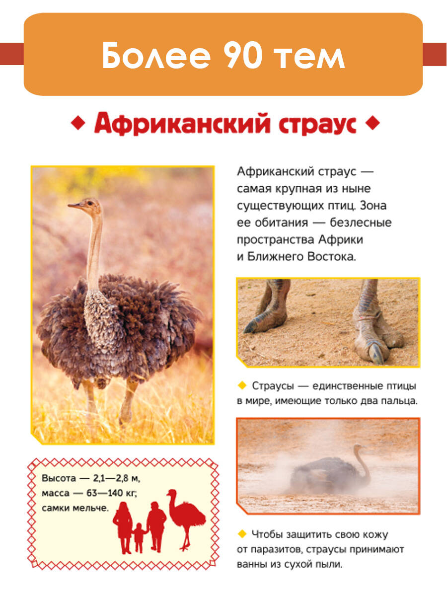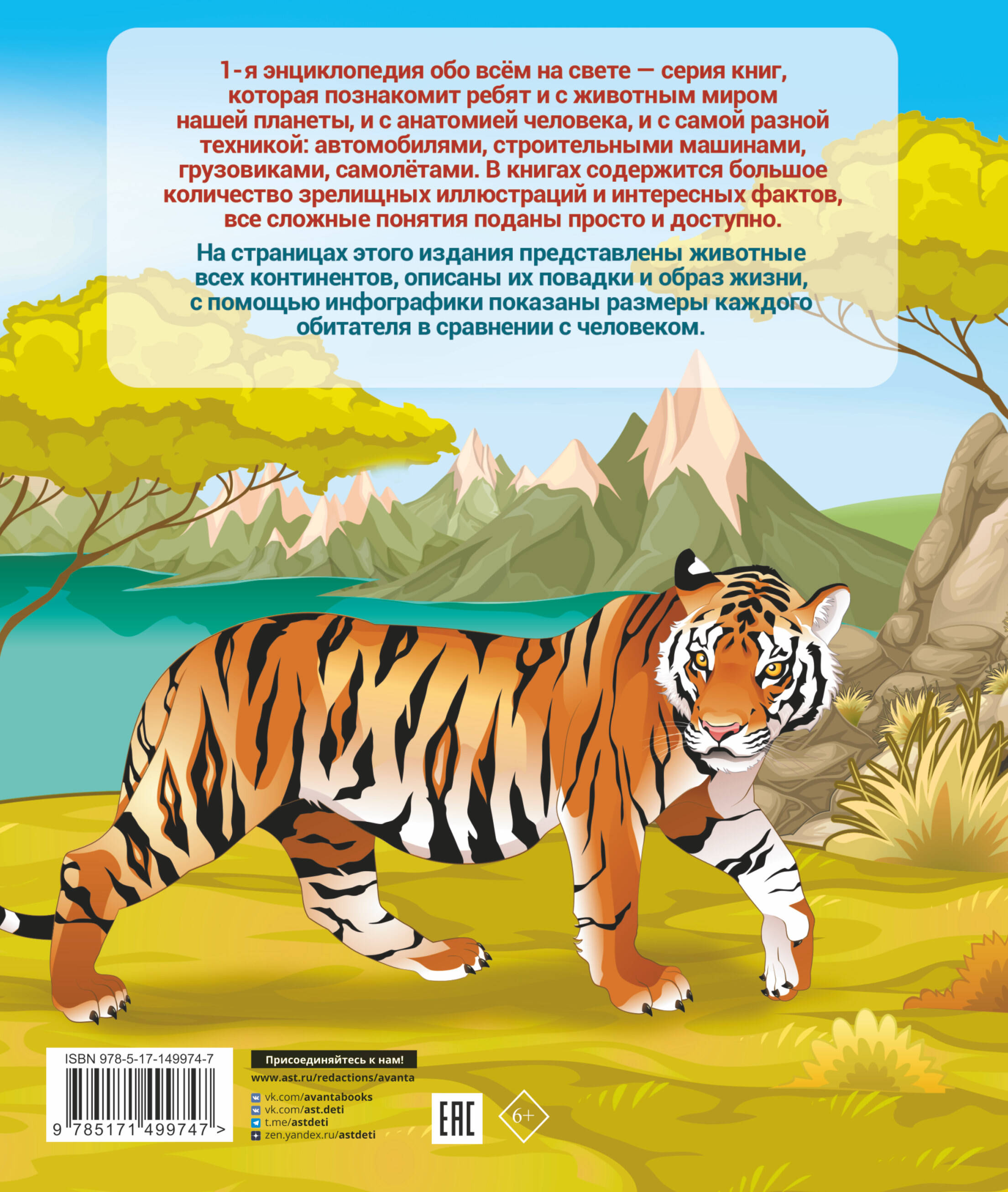 Эта энциклопедия познакомит детей с самыми разными животными нашей планеты: здесь представлены и млекопитающие, и птицы, и рыбы, и рептилии. Короткие понятные тексты описывают особенности каждого из них, размеры животных показаны в виде инфографики в сравнении с человеком, а множество ярких содержательных иллюстраций отражают образ жизни того или иного представителя животного мира. Для младшего школьного возраста.| Издательство | ИЗДАТЕЛЬСТВО "АСТ" |