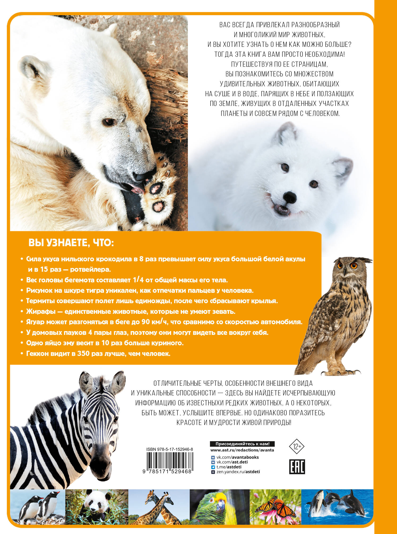 Эта большая энциклопедия откроет детям удивительный мир животных во всем его величии и многообразии. Здесь представлены млекопитающие и птицы, земноводные и пресмыкающиеся, насекомые и паукообразные. Листая страницы книги, можно изучить повадки грозных хищников, полюбоваться грациозными пернатыми, детально рассмотреть неуловимых насекомых и наконец-то увидеть вблизи животных, умело скрывающихся в природе от чужих глаз. А простая и понятная каждому классификация животного мира поможет упорядочить и систематизировать полученные знания. Книга не оставит равнодушными ни детей, ни их родителей, ведь увлекательная информация в ней подается в оригинальной, удобной для чтения форме и сопровождается прекрасными иллюстрациями. Уникальные сведения о представленных в энциклопедии редких животных помогут ребятам ближе познакомиться с окружающим миром, понять законы выживания и осознать острую необходимость в сохранении отдельных видов живой природы. Для среднего и старшего школьного возраста.| Издательство | ИЗДАТЕЛЬСТВО "АСТ" |