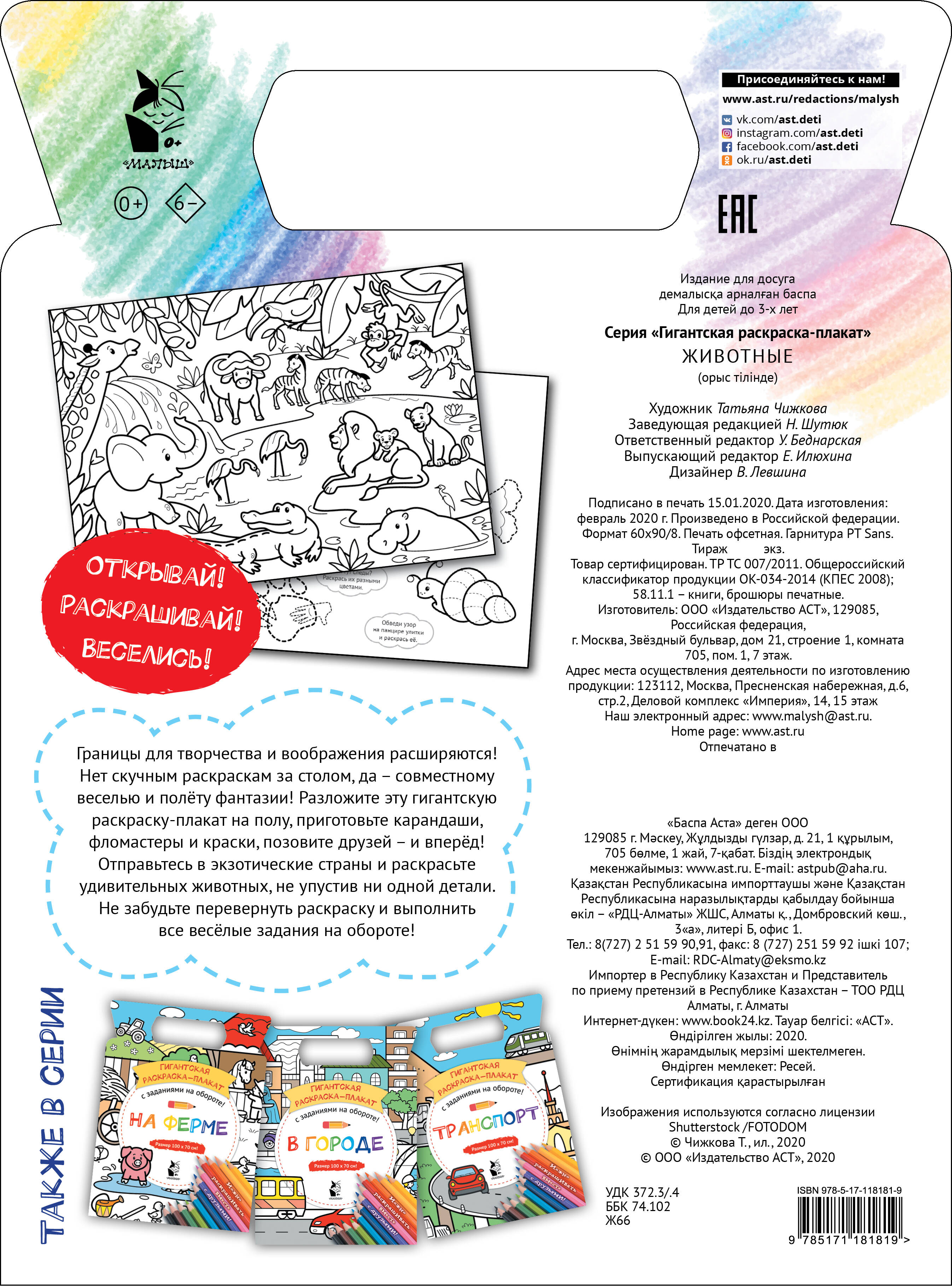 Границы для творчества и воображения расширяются! Нет скучным раскраскам за столом, да - совместному веселью и полету фантазии! Разложи эту гигантскую раскраску-плакат на полу, приготовь карандаши, фломастеры и краски, позови друзей - и вперед! Гигатская раскраска-плакат это: 1) огромное полотно для раскрашивания 100 на 70 см 2) милые и удобные для раскрашивания рисунки Татьяны Чижковой 3) интересные и веселые задания на обороте| Издательство | ИЗДАТЕЛЬСТВО "АСТ" |