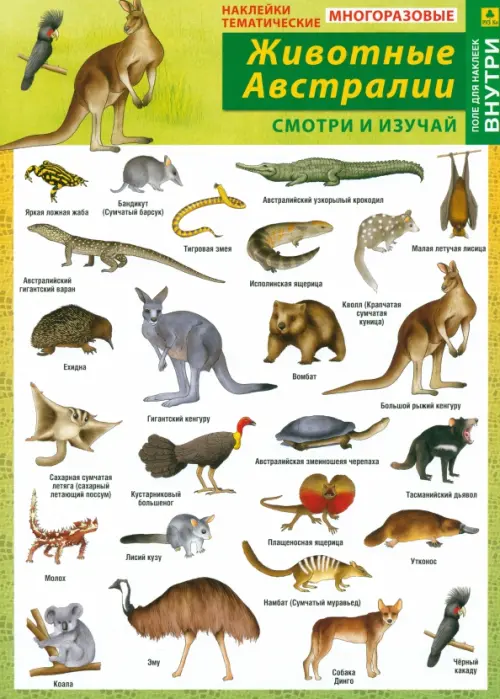 Животные Австралии. Наклейки тематические (+ поле для наклеек)