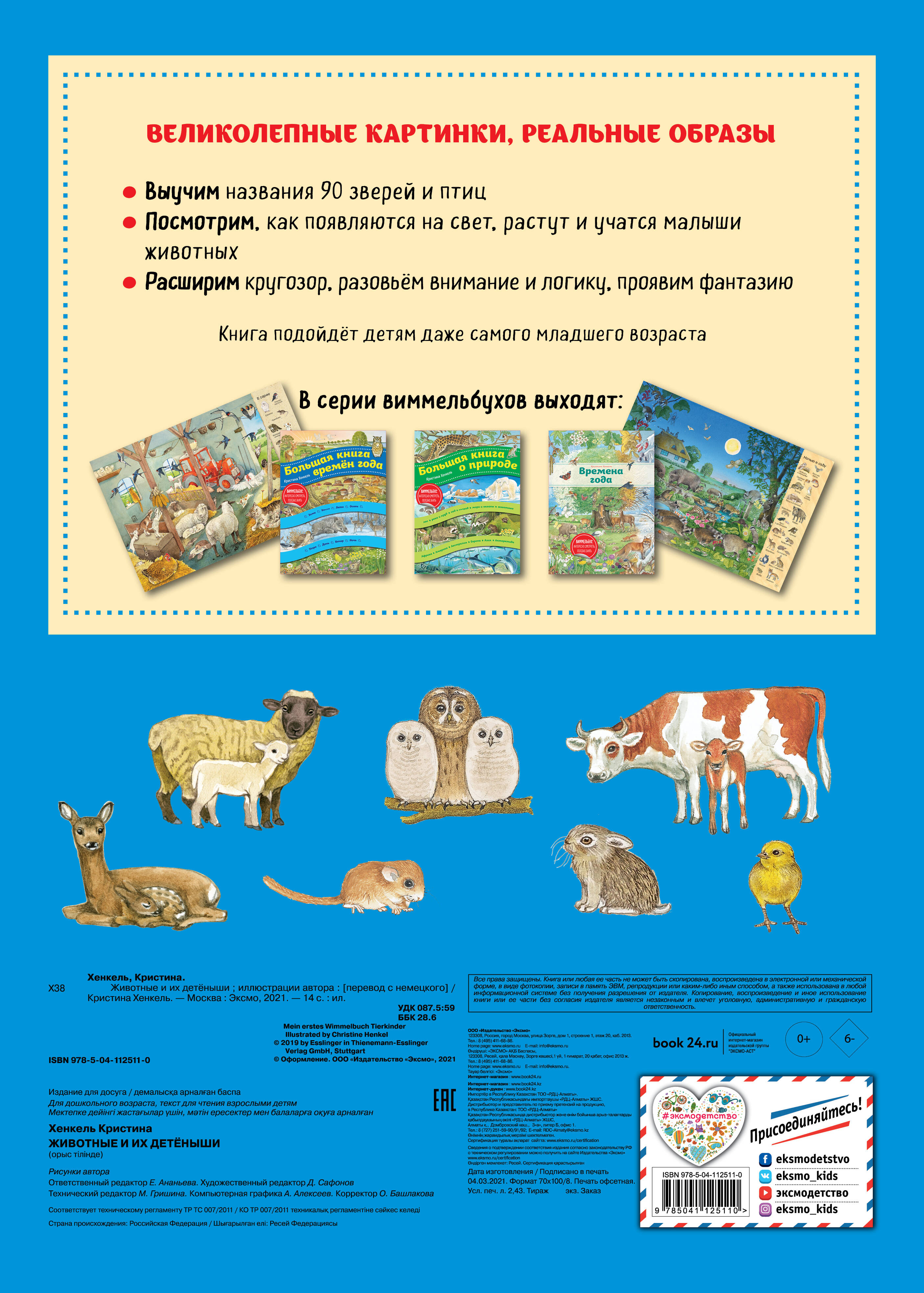 Эта книга со множеством героев позволит увидеть, как рождаются, растут и учатся малыши главных героев книги - животных и птиц. Детям будет интересно наблюдать за щенками и котятами, найти в чаще леса олененка и увидеть, как учатся летать птенцы. В виммельбухе с плотными картонными страницами немного разворотов, но почти 100 персонажей! Такая книга подходит детям любого возраста, расширяет кругозор, развивает внимательность и память, будит воображение, позволяет незаметно для себя выучить много названий животных и растений. Книга проиллюстрирована рисунками художницы Кристины Хенкель.| Издательство | ООО "Издательство "Эксмо" |