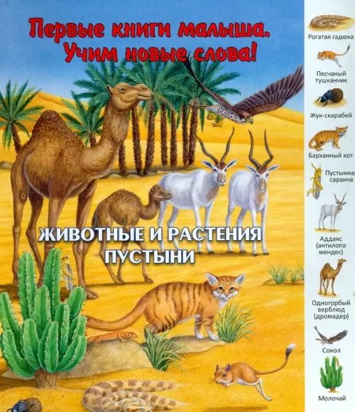 Сахара - самая большая пустыня в мире. Здесь живёт одногорбый верблюд (дромадер). Каракал (степная рысь) высматривает среди песков добычу. Саблерогая антилопа и антилопа мендес её не боятся У них есть отличная защита - рога.