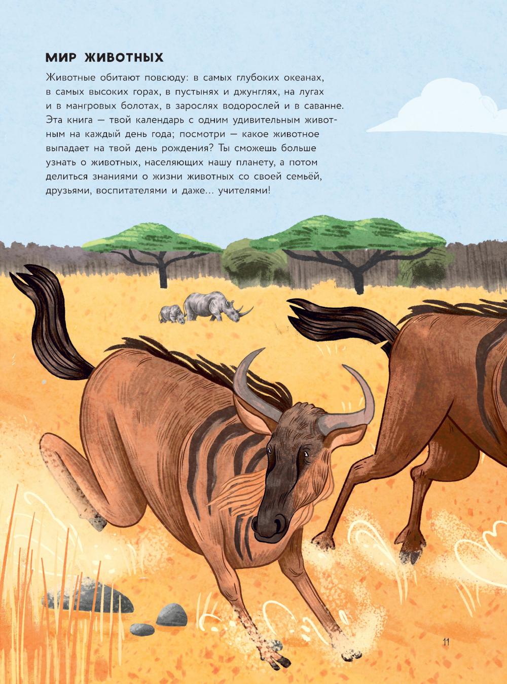Перед вами красочный путеводитель-календарь по миру животных со всех уголков света: каждый день года посвящён одному животному и удивительным фактам о его жизни. Обитатели саванн, джунглей, пустынь, морей и океанов; звери, птицы, рыбы, рептилии - у каждого свои особенности, о которых вы узнаете на страницах этой книги!| Издательство | АСТ |
