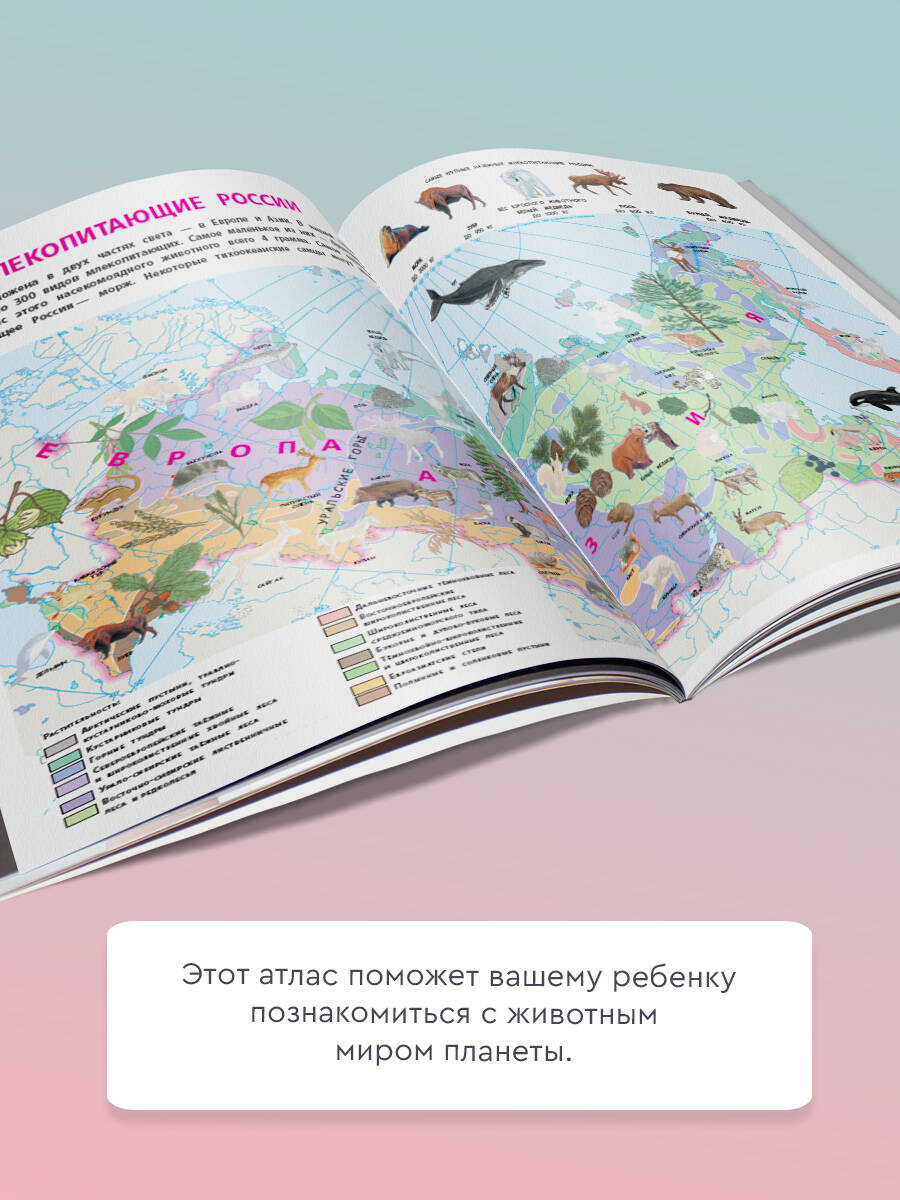 Эта книга поможет вашему ребенку познакомиться с животным миром планеты. Рассматривая первую часть атласа узнавайте интересные факты о млекопитающих, птицах, рыбах, насекомых и паукообразных. Во второй части даны карты всех материков: посмотри где обитают животные, запоминай названия океанов, морей, крупных рек и высоких гор. В середине книги размещен лист с наклейками - рассматривай атлас и наклеивай изображения животных на отмеченные места. Игровые занятия с нашим атласом расширяют кругозор и словарный запас, тренируют память, внимание, наблюдательность, смекалку и творческие способности.| Издательство | ИЗДАТЕЛЬСТВО "АСТ" |