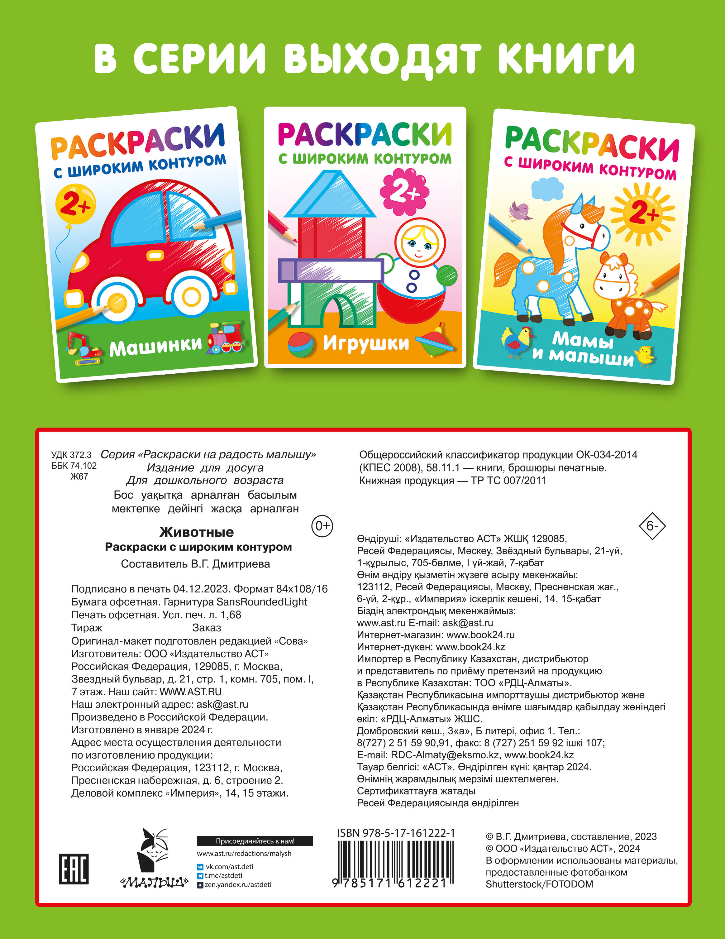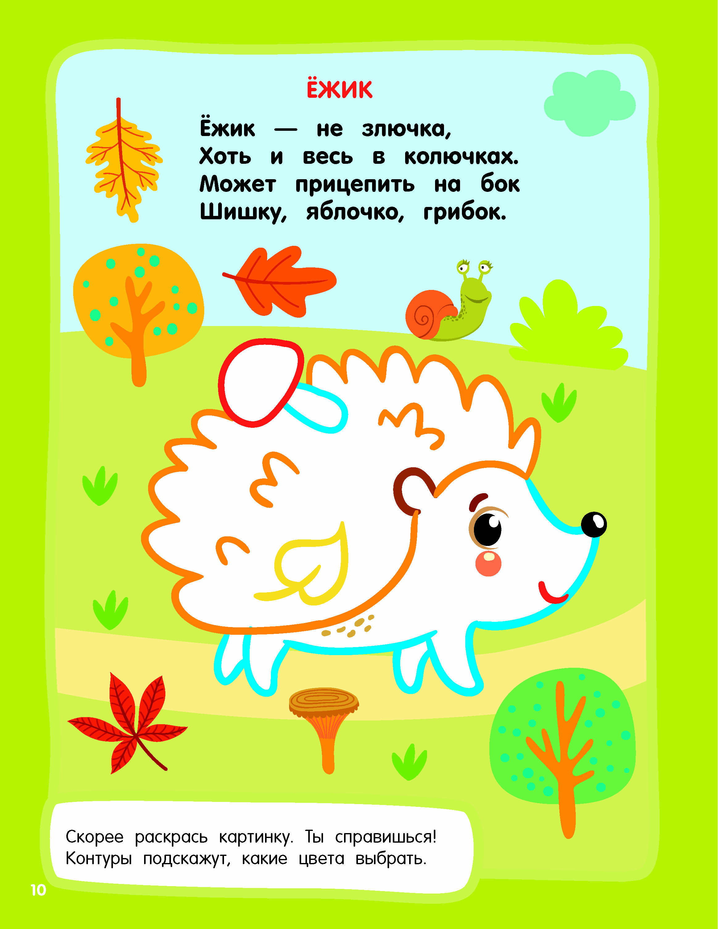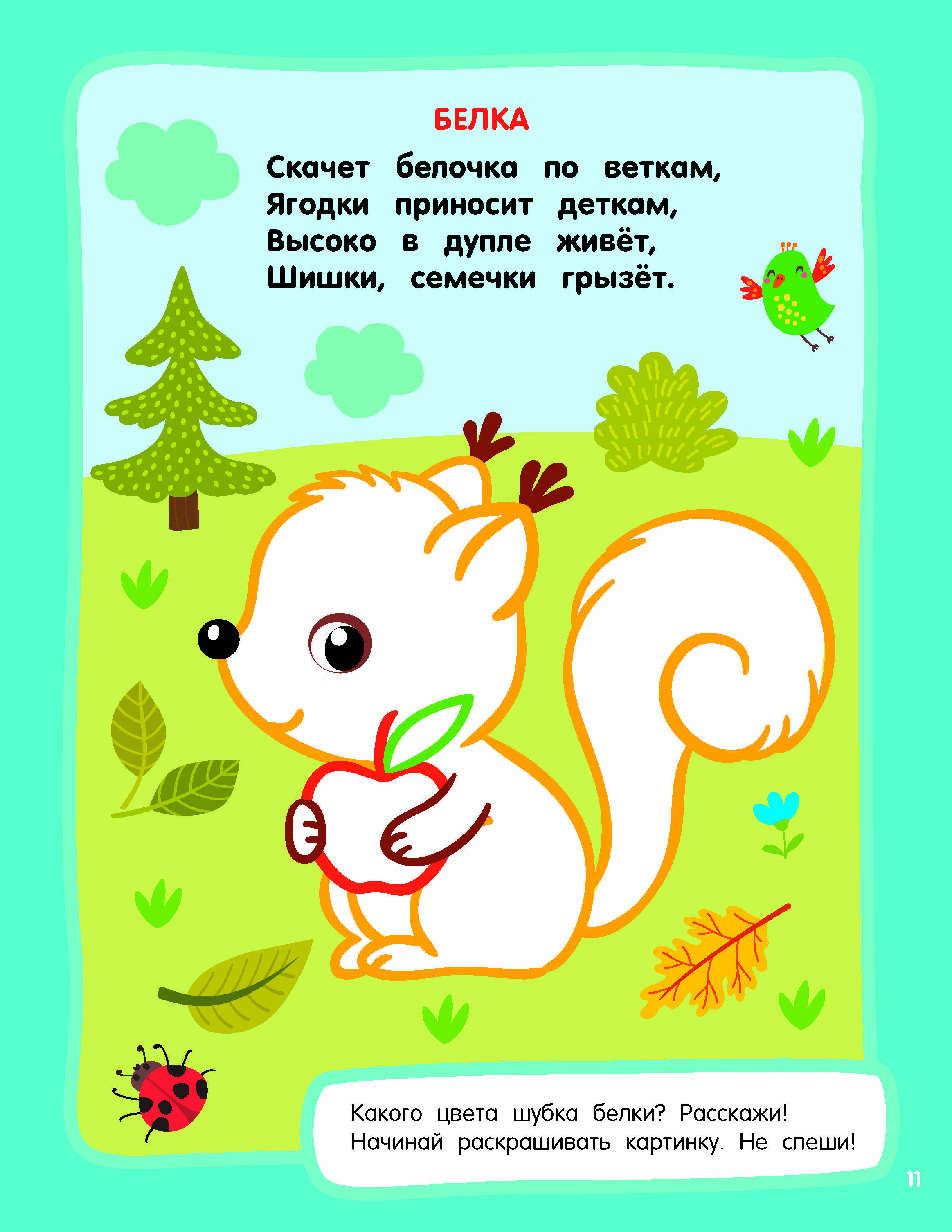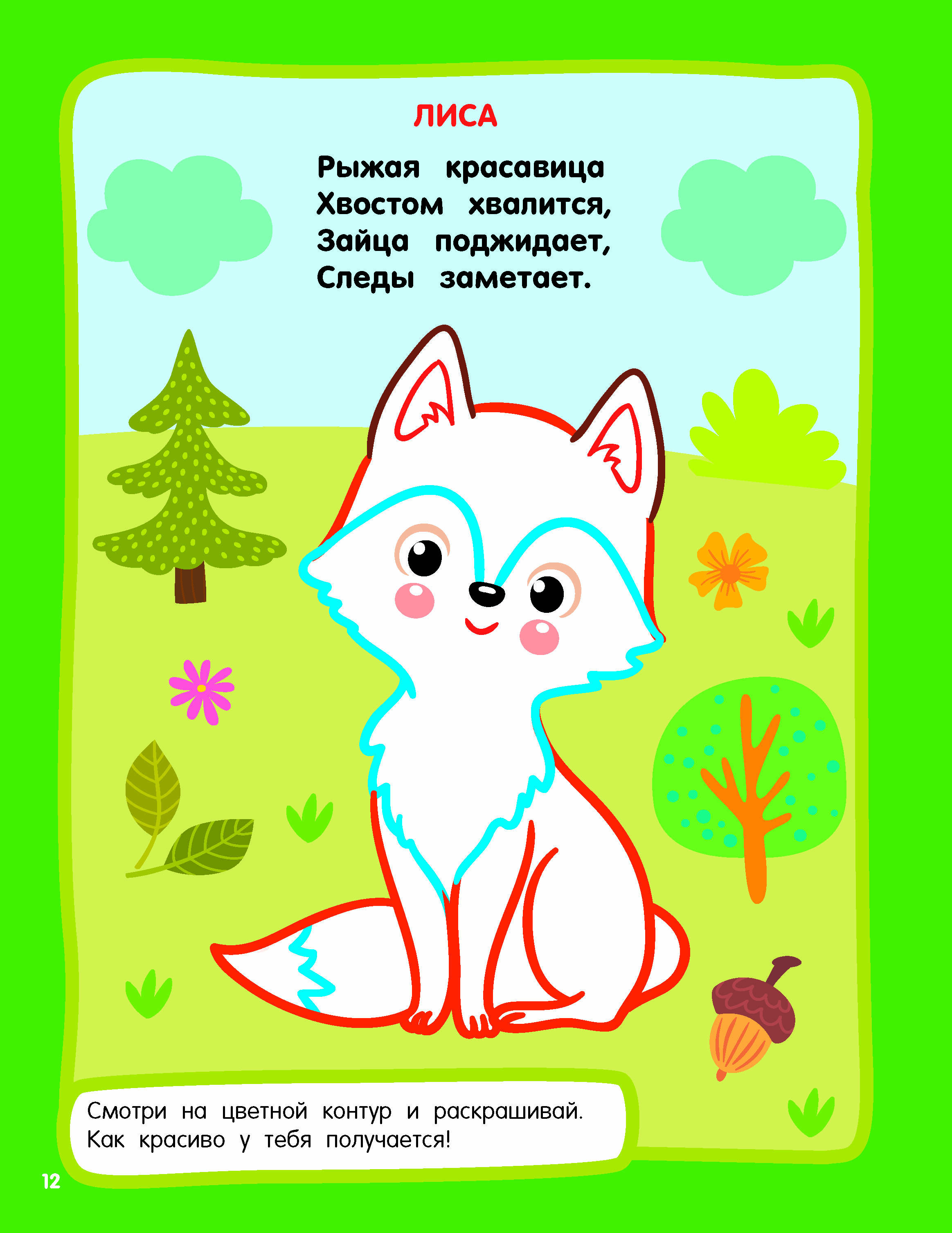 В книгах новой развивающей серии - забавные картинки с широким цветным контуром + развивающие задания + весёлые стихи о животных. Ребят ждёт знакомство с компанией цветных карандашей, которые подскажут, в какие цвета раскрасить каждый рисунок. Раскрашивать картинки с цветным широким контуром интересно и очень полезно - такие занятия расширяют кругозор и словарный запас, формируют графические навыки, развивают мышление, память, внимание, наблюдательность и творческие способности. Помогите ребенку раскрашивать зверей и птиц цветными карандашами, маркерами и мелками, красками - подарите малышу счастливые минуты совместного творчества. Малыш постарается всё сделать аккуратно - и у него обязательно получатся замечательные картинки!| Издательство | Издательство "АСТ" |