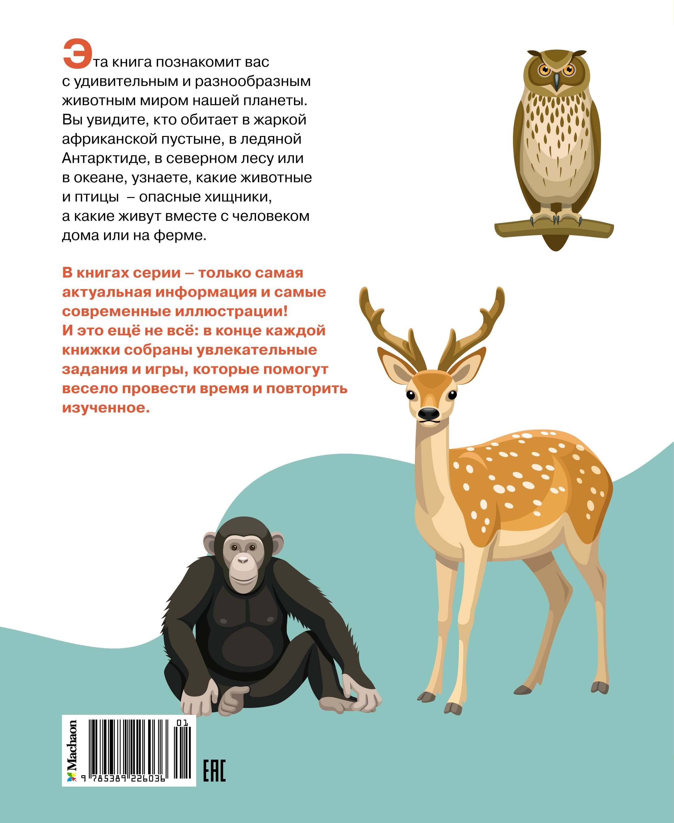 Эта книга познакомит вас с удивительным и разнообразным животным миром нашей планеты. Вы увидите, кто обитает в жаркой африканской пустыне, в ледяной Антарктиде, в северном лесу или в океане, узнаете, какие животные и птицы - опасные хищники, а какие живут вместе с человеком дома или на ферме. В книгах серии - только самая актуальная информация и самые современные иллюстрации! И это ещё не всё: в конце каждой книжки собраны увлекательные задания и игры, которые помогут весело провести время и повторить изученное.| Издательство | Азбука-Аттикус Издат.группа ООО |