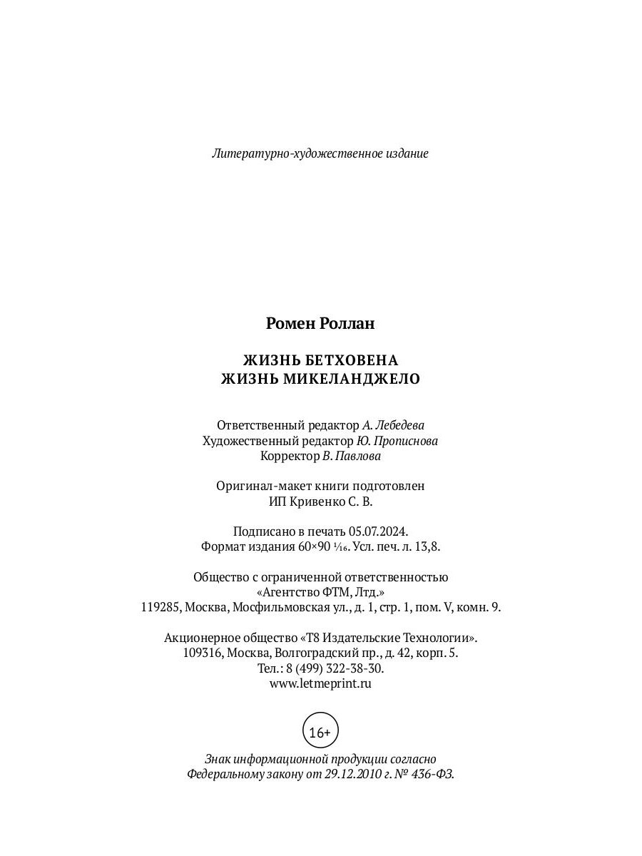 Аннотация: Жизнь Бетховена; Жизнь Микеланджело: романы