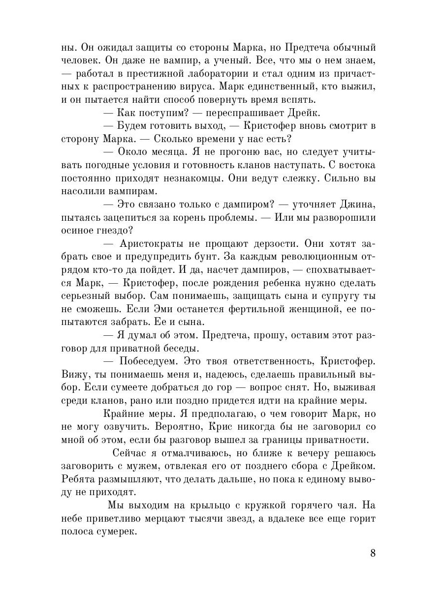 В мире бушует эпидемия, обратившая большую часть человечества в монстров - вампиров, жаждущих крови, и сделавшая большинство из них бесплодными. Вампиры отчаянно нуждаются в дампире - ребенке вампира и человеческой женщины - который станет родоначальником новой расы. Дампиры оказываются разменной монетой в борьбе кланов за выживание и власть, и главы кланов включаются в борьбу за полукровку, стремясь заполучить его любой ценой. Эмили человек, а Кристофер вампир, прошедший обращение насильно. Кристофер, не утративший чести и сострадания к людям, участвует в движении сопротивления и объединяет три расы - людей, вампиров и оборотней, вышедших на тропу войны с клановыми вампирами-аристократами. Он сражается за будущее, за Эмили, ставшую ему супругой, и за их еще не рожденного ребенка-дампира. В мире постапокалипсиса сложно выживать. Еще сложнее вести войну за право быть свободными.| Издательство | Т8 RUGRAM |