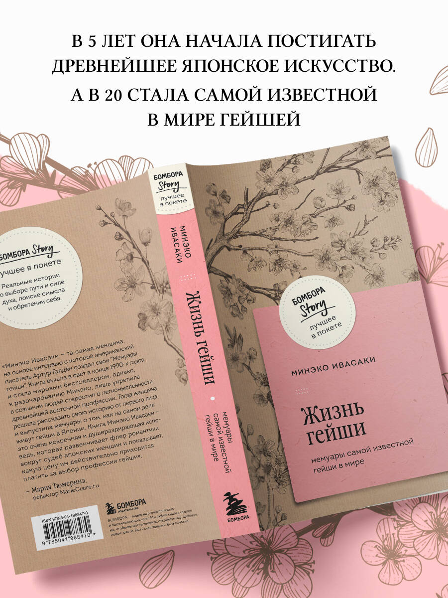 Жизнь Минэко Ивасаки была описана в бестселлере Артура Голдена «Мемуары гейши». По книге был снят одноименный фильм. Но Артур Голден допустил множество ошибок и неточностей, смешав, по мнению Минэко, искусство красоты с развратностью. И тогда она решила издать свои мемуары, где откровенно рассказала истинную правду о своей жизни. Обученная быть гейшей с пяти лет, Ивасаки жила среди других «женщин искусства», практиковала древние обычаи японских развлечений. Ей поклонялись короли, принцы, военные герои и государственные деятели. Женщина с удивительной судьбой, она зарабатывала миллионы, развлекая высокопоставленных гостей - встречалась с Елизаветой II и принцем Чарльзом, у нее брала уроки сама Майя Плисецкая. Она прошла красивый и изящный путь, но какую цену Минэко Ивасаки пришлось заплатить за свою невероятную жизнь? «Минэко Ивасаки - та самая женщина, на основе интервью с которой американский писатель Артур Голден создал свои "Мемуары гейши". Книга вышла в свет в конце 1990-х годов и стала мировым бестселлером, однако, к разочарованию Минэко, лишь укрепила в сознании людей стереотип о легкомысленности древнейшей восточной профессии. Тогда женщина решила рассказать свою историю от первого лица и выпустила мемуары о том, как на самом деле живут гейши в Японии. Книга Минэко Ивасаки - это очень искренняя и душераздирающая исповедь, которая развенчивает флер романтики вокруг судеб японских женщин и показывает, какую цену им действительно приходится платить за выбор профессии гейши». - Мария Тюмерина, редактор MarieClaire.ru