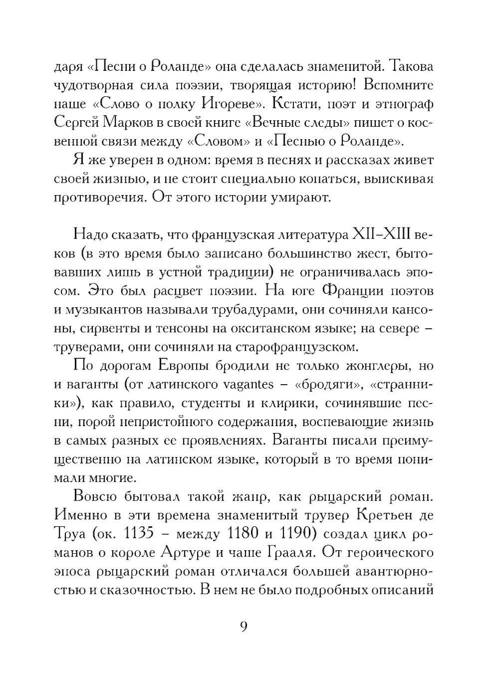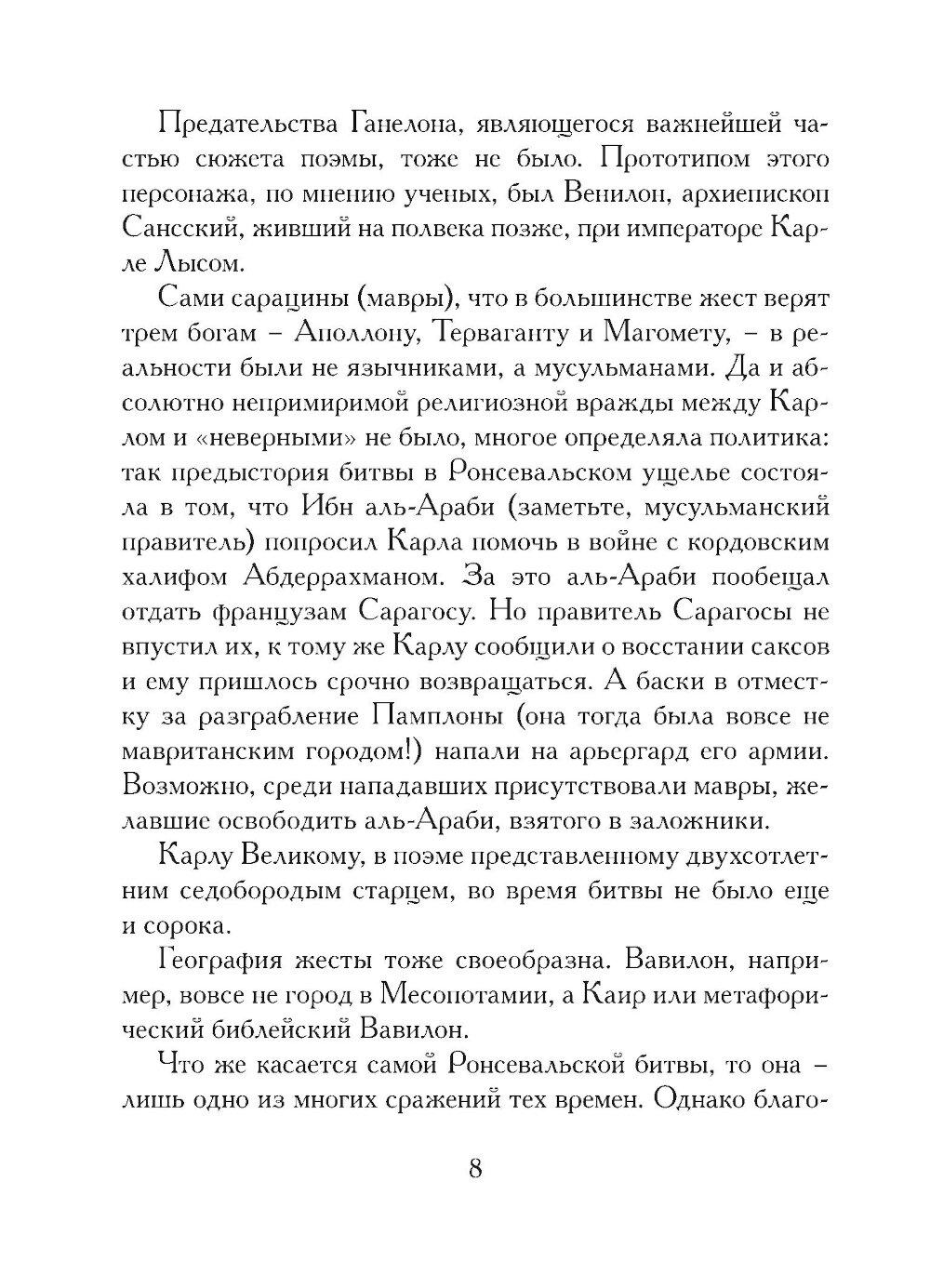 Многим читателям хорошо знакомы поэтические переводы «Песни о Роланде». Однако это лишь один из ярких фрагментов обширного эпического наследия средневековой Франции - в действительности цикл сказаний о Роланде включает в себя около ста произведений. Дмитрий Григорьев, поэт и писатель, лауреат премии Н. Заболоцкого, не ограничился пересказом широко известной «Песни о Роланде», а включил в книгу целый ряд других поэм о Карле Великом, где Роланд играет важную, но не центральную роль. Благодаря проделанной Григорьевым работе история героя представлена теперь от рождения до смерти, а его образ сделался живым и объемным.| Издательство | Литературная матрица |