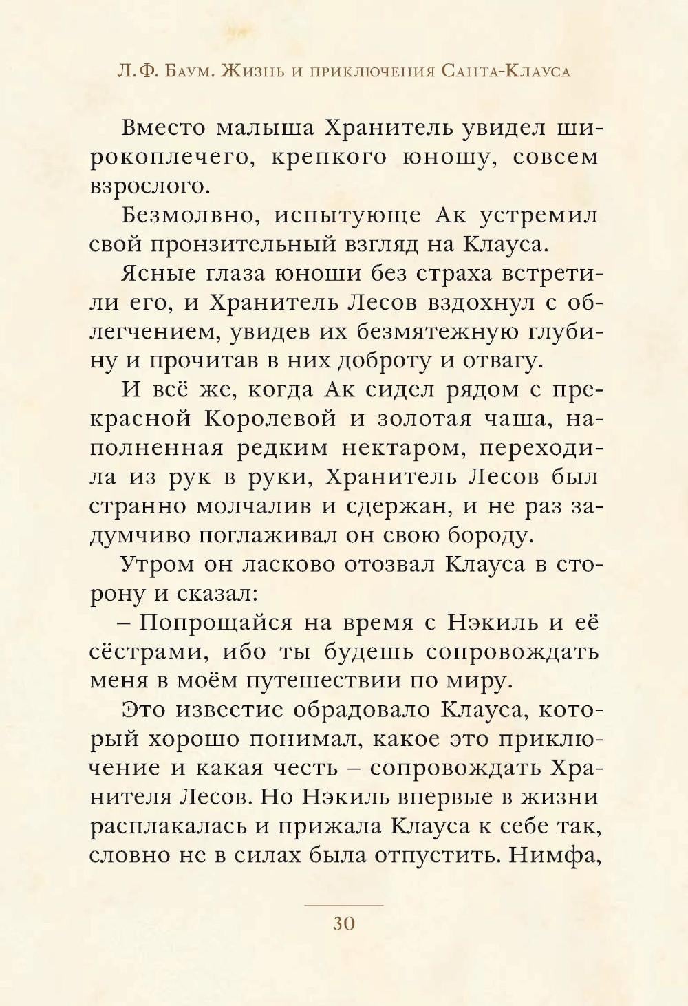 Лаймен Фрэнк Баум, автор «Волшебника Страны Оз», придумал для Санта-Клауса удивительную биографию, полную приключений и волшебства. Она познакомит вас с малышом-подкидышем, которого люди оставили в чаще, а воспитали феи, нимфы и добрые лесные существа. Вы увидите, как Клаус превращается в юношу, стремящегося помогать людям несмотря ни на что, становится высоким статным мужчиной с каштановой бородкой, умеющим и мастерить игрушки, и защищать малышей от зла, и наконец получает бессмертие, чтобы всегда дарить детям радость. А ещё узнаете, зачем он впервые залез в дом через дымоход, как вступил в великую битву с ужасными аугвами, которые ненавидят детский смех, где его дом (вовсе не на Северном полюсе!) и каковы настоящие имена его оленей (это вообще большой секрет). Помогут в этом новый перевод Евгении Гончаровой, который бережно передаёт замечательный юмор и философскую глубину сказки Баума, и классические иллюстрации Мэри Коулз Кларк из её самых первых изданий. И конечно, эта добрая, мудрая и очень неожиданная книга просто создана для того, чтобы стать подарком под новогодней ёлкой. Клаус ручается!| Издательство | ИД Мещерякова |