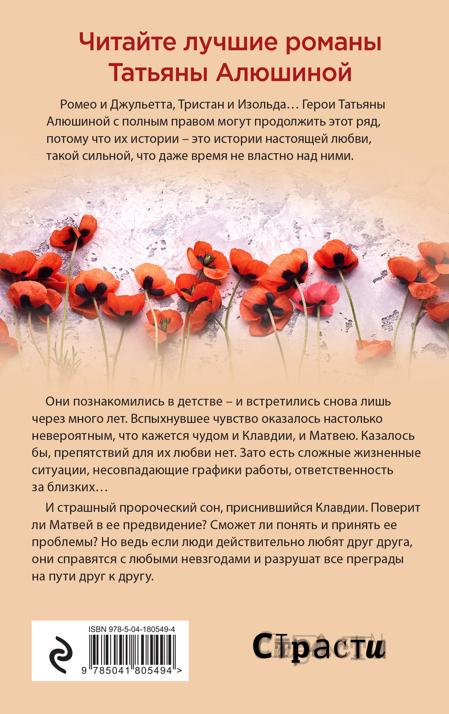 Перед читателем разворачивается удивительная история любви, берущая свое начало в детстве героев. Но просто встретиться через много лет - недостаточно. Матвей и Клавдия потрясены вспыхнувшим чувством, но они уже взрослые люди, и случившимся чудом нужно не только восхищаться, его нужно суметь сохранить. Интересные судьбы, непростые персонажи, героиня с даром предвидения - все это в новой чудесной книге Татьяны Алюшиной.| Издательство | ООО "Издательство "Эксмо" |