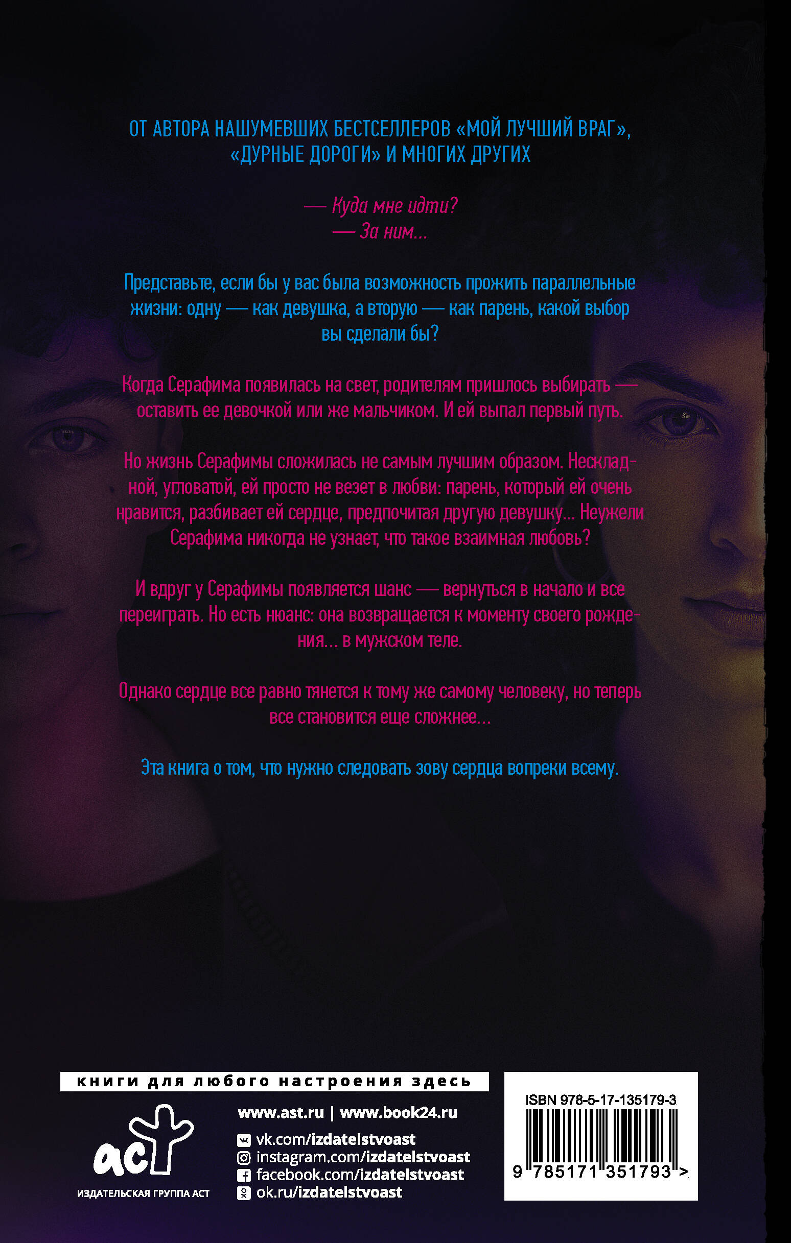 Представьте, если бы у вас была возможность прожить параллельные жизни: одну - как девушка, а вторую - как парень, какой выбор вы сделали бы? Когда Серафима появилась на свет, родителям пришлось выбирать - оставить ее девочкой или же мальчиком. И ей выпал первый путь. Но жизнь Серафимы сложилась не самым лучшим образом. Нескладной, угловатой, ей просто не везет в любви: парень, который ей очень нравится, разбивает ей сердце, предпочитая другую девушку… Неужели Серафима никогда не узнает, что такое взаимная любовь? И вдруг у Серафимы появляется шанс - вернуться в начало и все переиграть. Но есть нюанс: она возвращается к моменту своего рождения… в мужском теле. Однако сердце все равно тянется к тому же самому человеку, но теперь все становится еще сложнее…| Издательство | Издательство "АСТ" |