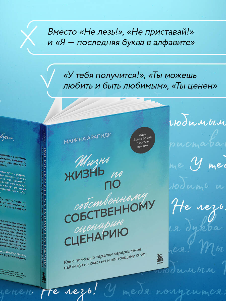 «Не будь ребенком», «не чувствуй», «не будь собой». С этими запрещающими посланиями многие из нас сталкиваются в детстве. А потом вырастают и чувствуют себя одинокими и ненужными, сильными, но безрадостными, страдают от прокрастинации, не умеют говорить «нет» и боятся соглашаться, потому что не верят, что у них получится. Эта книга, написанная клиническим психологом и регрессологом Мариной Арапиди, поможет вам изменить сценарий жизни принятием нового решения о себе, окружающих и мире вокруг. Основанная на транзактном анализе Эрика Берна и более чем 10-летнем опыте автора, книга помогает перестать повторять ошибки родителей и избавиться от разрушительных установок. В «Жизни по собственному сценарию» вы найдете 10 шагов терапии перерешения и 7 медитативных практик, которые помогут вам научиться договариваться с самим собой, слышать свои желания и избавиться от навязанных моделей поведения. ОТЗЫВ «Помните медведицу, которую держали в клетке 20 лет, и даже на воле та продолжила ходить кругами? Или огромного слона на привязи у маленького колышка, который еще слоненком так привык, что больше не пытался вырваться? Думая, что свободны, мы остаемся заложниками своего неосознаваемого жизненного сценария, который получили в детстве и "забыли" сбросить, повзрослев. Сценарий описывает, как именно человек будет не жить полной жизнью, принося свою эффективность и счастливость на алтарь псевдородительской любви, - желание, уже абсурдное для взрослого, но продолжающее незримо править нами. В результате все то, что мы принимаем за судьбу, злой рок и невезение, это не наша беда, это наша заслуга. Сценарий - шоры цирковой лошадки. И если вы не хотите всю жизнь так и бегать по кругу, вам необходимо сбросить с себя проклятие сценария. Книга, которую вы держите в руках, позволит вам сделать эт»". - Вера Дейногалериан, психотерапевт, автор книги «Взрослый снаружи, взрослый внутри»