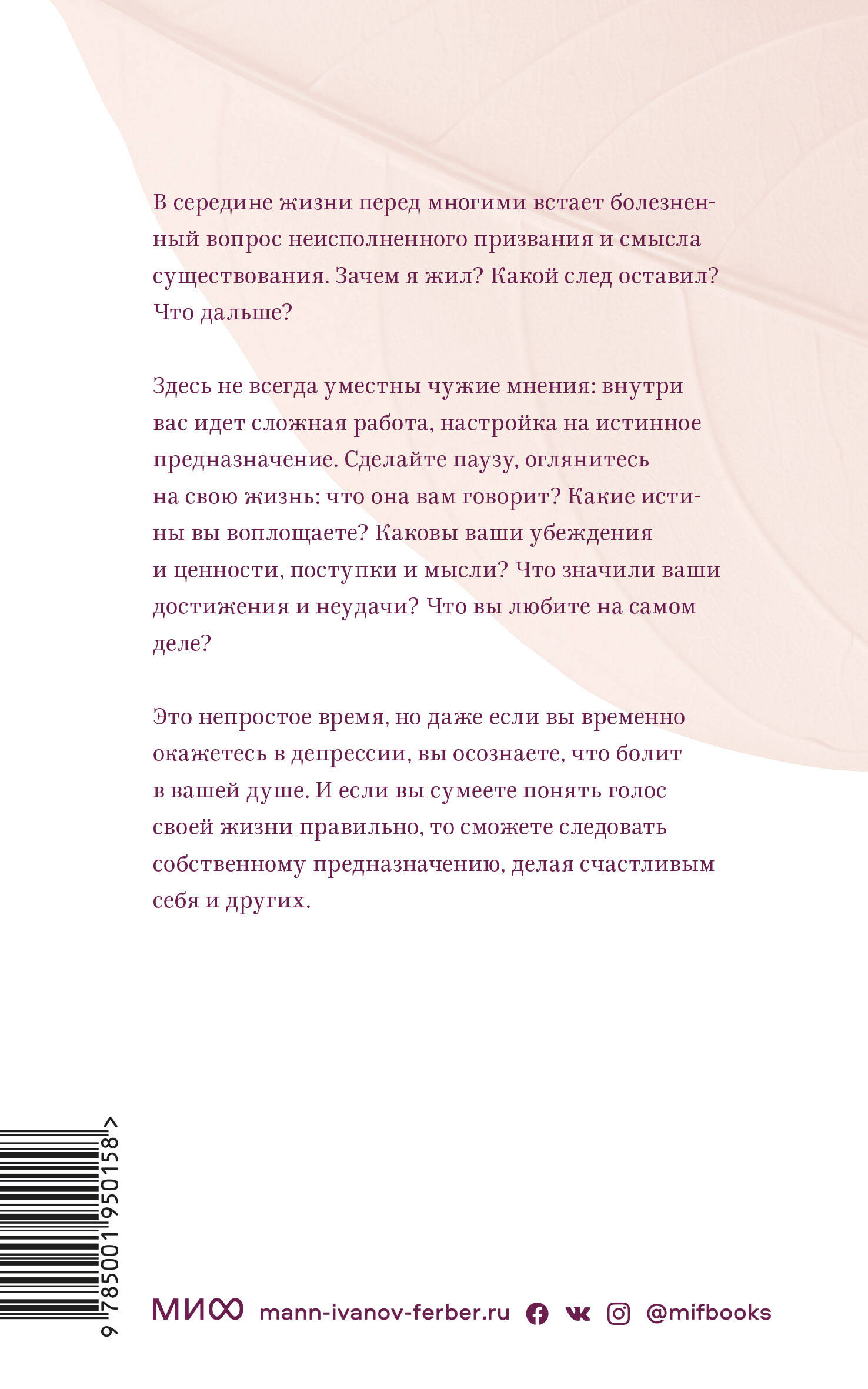 В чем смысл и предназначение вашей жизни? В середине жизни перед многими встает болезненный вопрос смысла жизни и призвания. Зачем я жил? Какой след оставил? Что дальше? Эта книга поможет пройти кризис среднего возраста. Прислушайтесь к тому, что о вас говорит ваша жизнь, ваши поступки и мысли. Ваша история со всеми взлетами и падениями - только ваша, и, проанализировав ее, вы сможете понять свое призвание, свой дар, свет, который вы несете миру. Не всегда смысл жизни меряется достижениями: неудачи также помогают вам раскрыть свой потенциал. Переоцените их вместе с автором. Даже если вы в депрессии - вы сможете понять, что болит в вашей душе и как дать этому выход. Не родители, не друзья, а ваша жизнь, ваш внутренний свет подскажет вам, как жить дальше. Прислушайтесь к тому, что она вам говорит. Для кого книга: Для тех, кого волнуют вопросы смысла жизни и призвания. Для тех, кто хочет осмотреть и переоценить жизненные события. Для всех, кому кажется, будто жизнь проходит мимо. От автора: Мне было чуть за тридцать, когда я в буквальном смысле начал просыпаться, задаваясь вопросами о своем призвании. Дела у меня внешне шли хорошо, но какое дело душе до внешнего. Я стал искать более осмысленный путь. Я не хотел ни богатства, ни власти, не стремился к победам или карьере, но начал понимать, что можно жить не своей жизнью. Я боялся именно этого и не был уверен в том, что внутри меня кроется истинное призвание, не понимал, могу ли доверять своему чувству, смогу ли дотянуться до этой жизни. Я просыпался посреди ночи и часами смотрел в потолок. Затем я наткнулся на старую пословицу: "Пусть жизнь говорит". Она меня очень вдохновила, и я подумал, что понимаю ее смысл: "Руководствуйтесь наивысшими ценностями и истиной. Живите в соответствии с ними всегда". В то время моими героями были люди, которые так и поступали (Мартин Лютер Кинг-младший, Роза Паркс, Махатма Ганди, Дороти Дэй), и призыв к жизни ради великой цели нашел отклик в моей душе. Итак, я нашел самые высокие идеалы, какие только смог, и приступил к их достижению. Результатами редко хотелось восхищаться, часто они выглядели смешными и довольно несуразными. И они всегда были ненастоящими, искажали мое истинное "я", собственно, как и бывает, когда человек живет снаружи, а не изнутри. Я просто нашел "благородный" способ проживать не свою жизнь. Я тратил ее на подражание вместо того, чтобы слушать свое сердце. Сегодня, тридцать лет спустя, фраза "Пусть жизнь говорит" значит для меня нечто другое. Теперь значение отражает как двусмысленность этих слов, так и сложность моего собственного опыта: "Прежде чем сказать своей жизни, что вы намерены с ней сделать, послушайте, что она хочет сделать с вами. Прежде чем сказать своей жизни, каким истинам и ценностям вы решили соответствовать, позвольте ей рассказать вам, какие истины вы воплощаете, какую ценность представляете".| Издательство | МАНН, ИВАНОВ И ФЕРБЕР ООО |