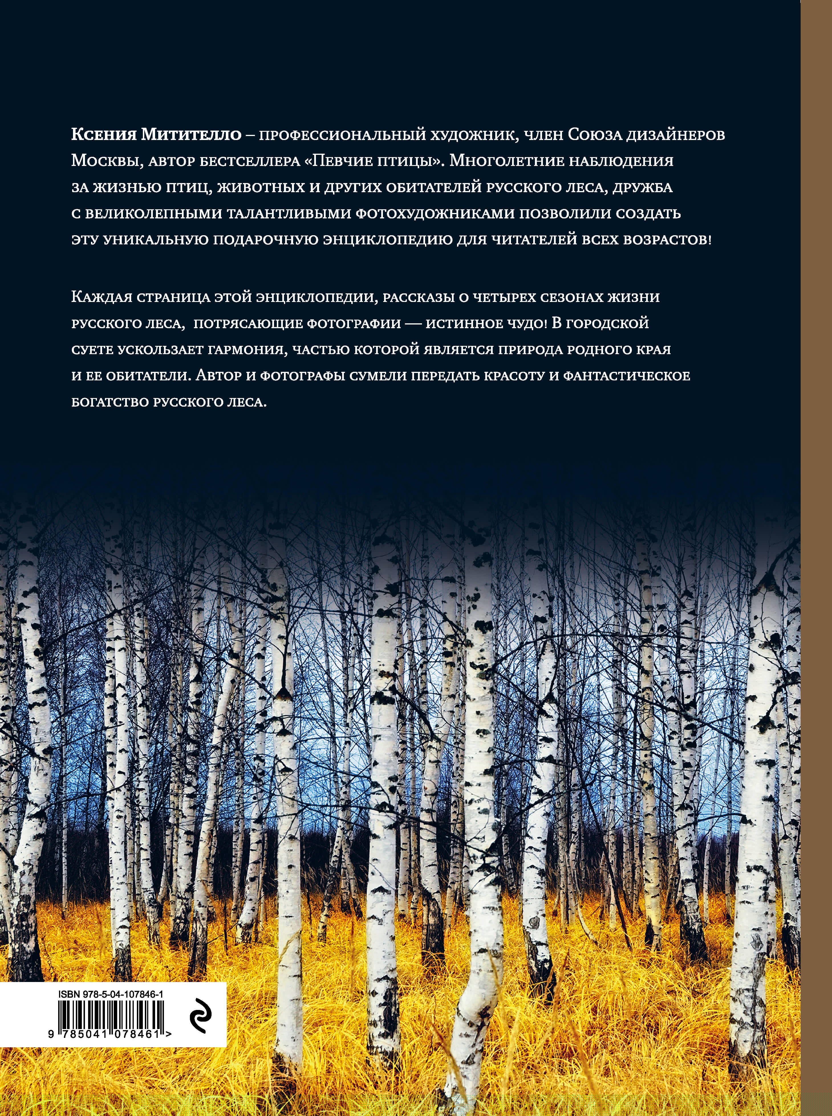 Это уникальное подарочное издание откроет для вас фантастический и прекрасный мир русского леса, жизни его обитателей и богатства растений. Ксения Митителло - профессиональный художник, член Союза дизайнеров Москвы, автор бестселлера «Певчие птицы». Многолетние наблюдения за жизнью птиц, животных и других обитателей русского леса, потрясающие работы фотохудожников познакомят с самыми известными и харизматичными представителями отечественной флоры и фауны, их удивительной жизнью на протяжении четырех сезонов. Эта книга станет великолепным подарком и взрослым, и маленьким любителям родной природы.| Издательство | ООО "Издательство "Эксмо" |