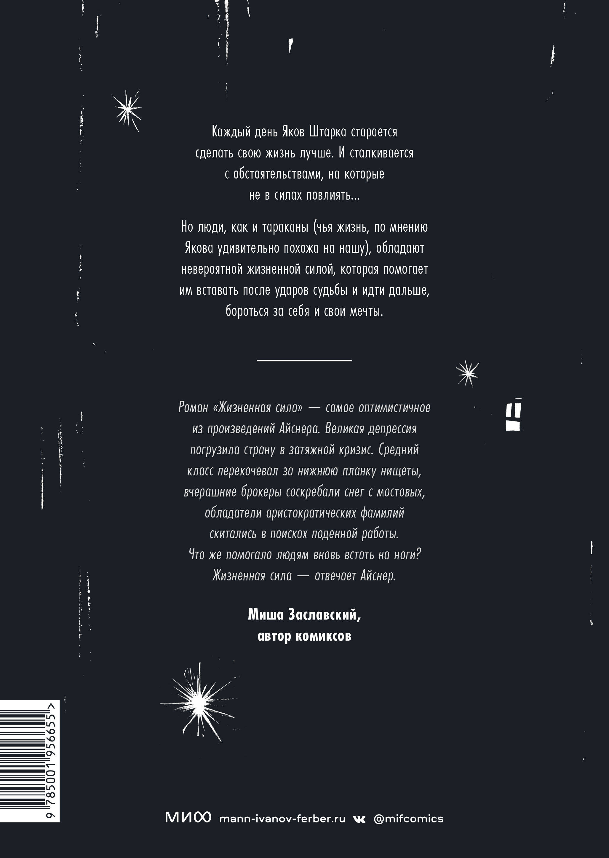 "Жизненная сила" - пронзительное высказывание о том, что заставляет нас жить дальше, бороться за себя и свои мечты и верить в добро. На Дропси-авеню в захудалом районе Нью-Йорка жизнь идет своим чередом. Яков Штарка - семьянин и плотник, потерявший всякий интерес к жизни и своим жене и детям, пытается найти хоть какую-то работу и смысл существования. Элтон Шафтсбери - бывший владелец брокерского дома, чье состояние уничтожила Великая депрессия, пытается начать всё сначала, а еще устроить свою личную жизнь. Мафиози, иммигранты, беженцы, соседские дети и бездомные… все пытаются выжить, невзирая на тяготы и лишения, которыми награждает их жизнь. Но главное - иметь ту саму жизненную силу, которая заставляет каждого из нас изо дня в день идти вперед и не сдаваться. Действие "Жизненной силы" происходит во время Великой депрессии и рисует яркую и мрачную картину того, что приходилось делать разным людям - и бедным, и богатым - чтобы выжить в один из самых трудных периодов в истории Америки. В этом мощнейшем романе тонко переплетаются судьбы людей и реальные исторические события. Фишки книги: - Выразительные персонажи, глубина тонких сюжетных переплетений, в деталях проработанные городские ландшафты. - Мощные черно-белые иллюстрации, которые полностью погружают в атмосферу Нью-Йорка 1930-х годов. - Вырезки из газет, буднично освещающих события, которые сейчас уже история, а в 30-е годы - часть жизни обычных людей. Для кого книга: Для читателей от 18 лет. Для всех, кто любит непростые жизненные истории. Для поклонников творчества великого Уилла Айснера.| Издательство | МАНН, ИВАНОВ И ФЕРБЕР ООО |