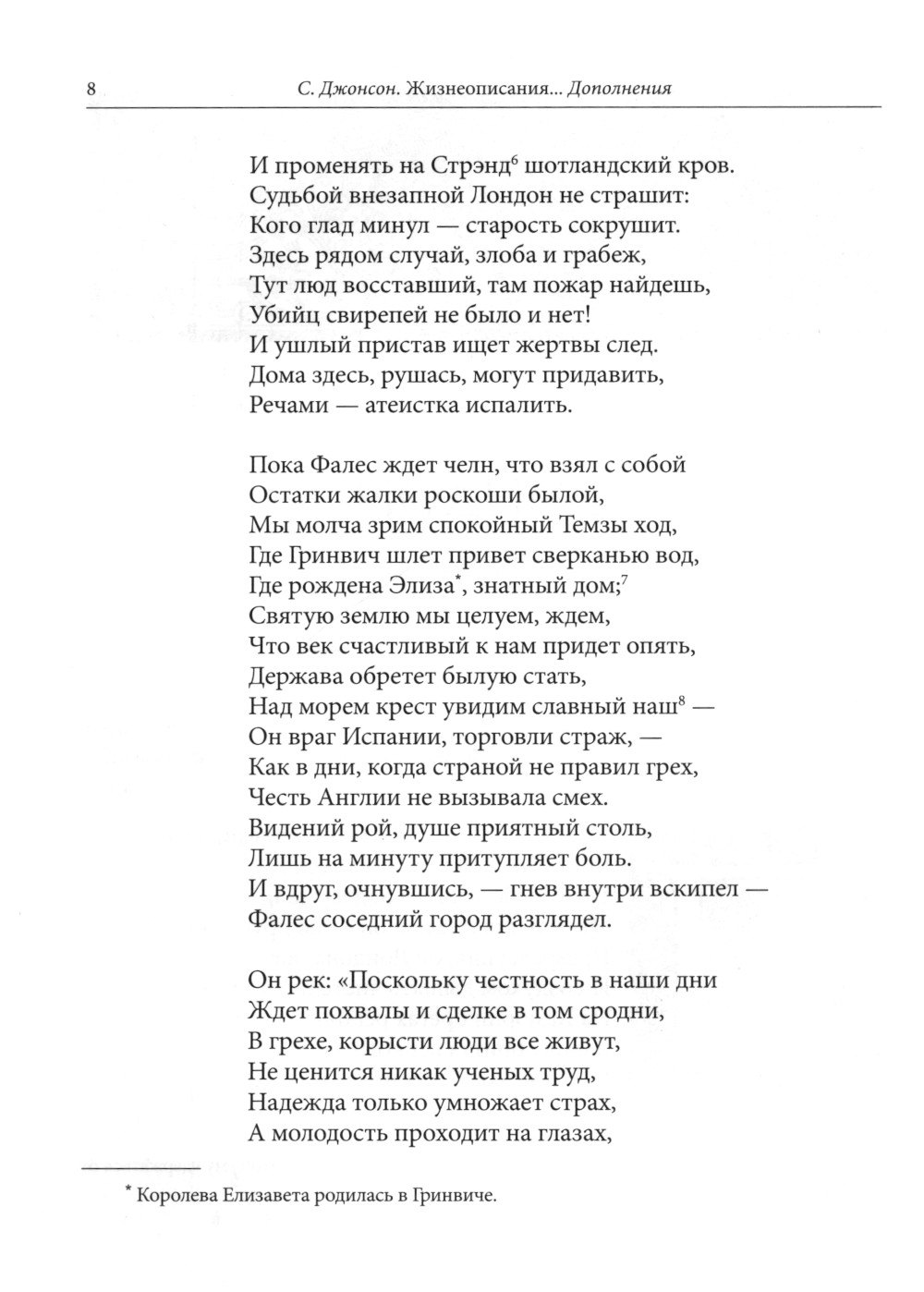 Без преувеличения можно сказать: перед читателем - эпохальная книга. Впервые на русском языке - полное издание знаменитых «Жизнеописаний...» Сэмюэла Джонсона, интеллектуала, чье имя стало синонимом второй половины XVIII века и в Англии, и за ее пределами. Великий критик и биограф, создатель знаменитого «Словаря английского языка» - Джонсон был к тому же мастером слова, на чью речь ориентировались многие авторы последующих поколений. Для англичан Джонсон и по сей день остается главнейшим эстетическим и нравственным авторитетом. В корпус памятника вошли 52 жизнеописания - биографии британских поэтов, от крохотных зарисовок, напоминающих изящно ограненные драгоценные камни, до развернутых, воистину эпических, повестей, захватывающих читателя и переносящих его в далекие времена. Джонсон недаром известен как реформатор биографического жанра. Его биографии - не сухие сводки фактов и дат, но яркие, одухотворенные тексты, в которых пульсирует жизнь минувших эпох, а герои сами сходят к читателю со страниц. Здесь - исторические анекдоты и конфузы, остроумные ремарки и едкие замечания, и даже настоящие криминальные драмы. В своих биографиях Джонсон явил два «золотых века» английской поэзии: в его бессмертном труде соседствуют такие знаменитости, как громокипящий Милтон и величественный Поуп, остроумный Свифт и изысканный Аддисон, и многие другие. В биографии включены пространные (иногда - на десяток страниц!) выдержки из их сочинений, при этом многие переведены на русский язык впервые. Не меньший интерес представляет раздел «Дополнения», в который вошли поэтические сочинения самого С. Джонсона - поэма «Лондон», писанная в подражание Ювеналу и не уступающая по остроте лучшим сатирам римского поэта, избранная лирика, дивные образцы поэзии августинской эпохи в переводе Т.А. Гуревич (преподавателя РАНХиГС). Представлены здесь и два важнейших критических текста, два предисловия, - к знаменитому «Словарю...» и к изданию сочинений Шекспира (рассуждения великого августинца о великом елизаветинском драматурге). Наконец, настоящим событием является публикация большого отрывка из «Жизнеописания Сэмюэла Джонсона» Дж. Босуэлла в исполнении классика перевода Ю.Д. Левиным, также издаваемого впервые. Особую ценность являет для читателя обстоятельно подготовленный научный аппарат. Лучшему пониманию текста будет способствовать детальнейший филолого-исторический комментарий (сост. Н.П. Рейнгольд, профессором РГГУ), в котором, помимо прочего, выявлены основные источники труда Джонсона, приведены варианты и разночтения, разобраны контексты, аллюзии, реалии - и в целом явлена, во всём многообразии красок и смысла, творческая лаборатория автора. Больше сведений о жизни и творчестве Джонсона, о месте, которое он занимал в жизни эпохи, а также о русской рецепции читатель сможет почерпнуть из статей Н.П. Рейнгольд и Е.П. Зыковой (ведущего научного сотрудника ИМЛИ, увы, не дожившей до выхода памятника в свет). Включены в настоящее издание и красочные цветные альбомы: первый из них освещает жизнь Джонсона и его круга, во второй вошли портреты поэтов, созданные величайшими художниками тех времен.| Издательство | Ладомир |