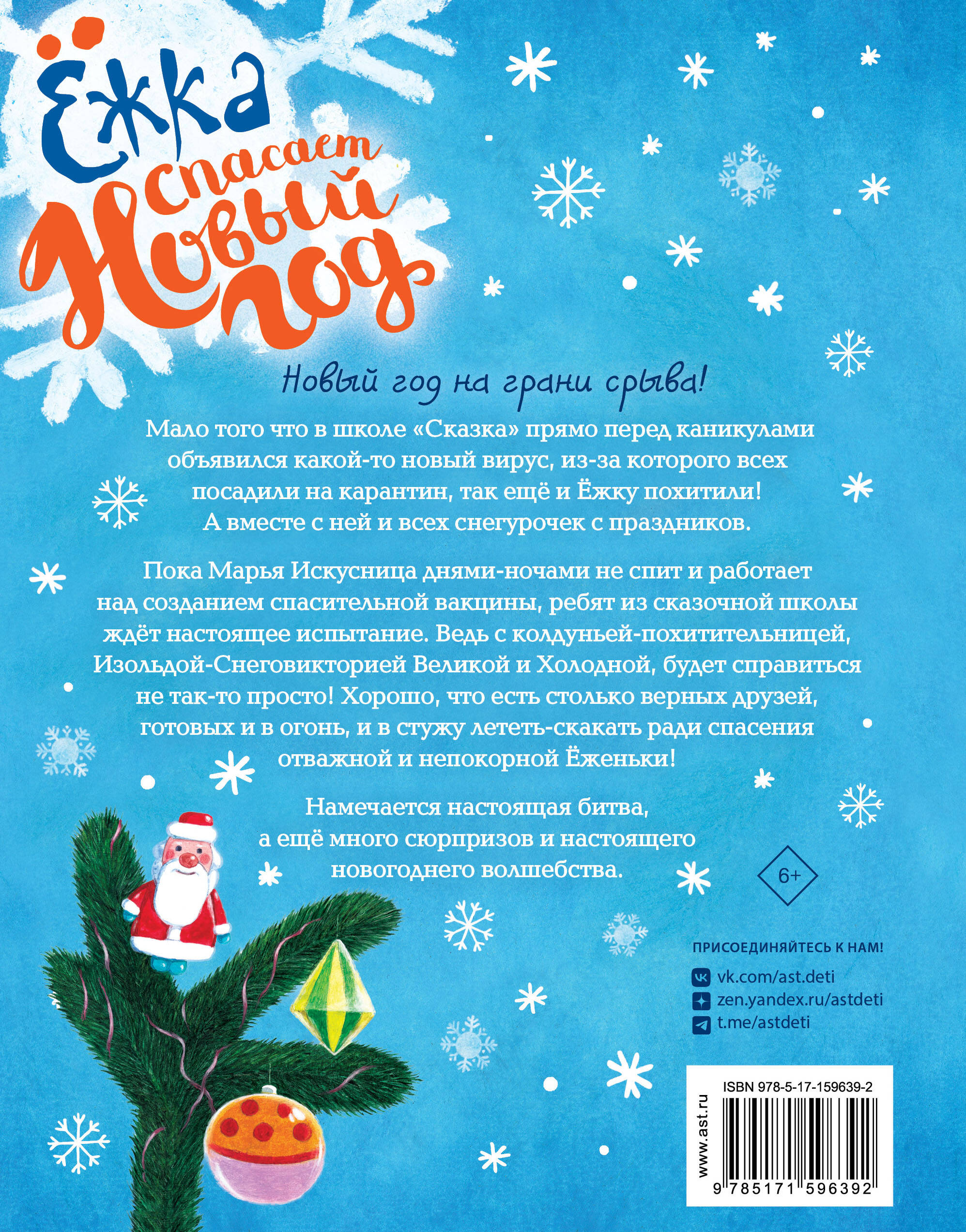 Новый год на грани срыва! Мало того, что в школе "Сказка" прямо перед каникулами объявился какой-то новый вирус, из-за которого всех посадили на карантин. Так ещё и Ёжку похитили! А вместе с ней и всех снегурочек с праздников. Пока Марья Искусница днями-ночами не спит и работает над созданием спасительной вакцины, ребят из сказочной школы ждёт настоящее испытание. Ведь с колдуньей-похитительницей, Изольдой-Снеговикторией Великой и Холодной, будет справиться не так-то просто! Хорошо, что есть столько верных друзей, готовых и в огонь, и в стужу лететь-скакать ради спасения отважной и непокорной Ёженьки! Намечается настоящая битва, а ещё много сюрпризов и настоящего новогоднего волшебства.| Издательство | Издательство "АСТ" |