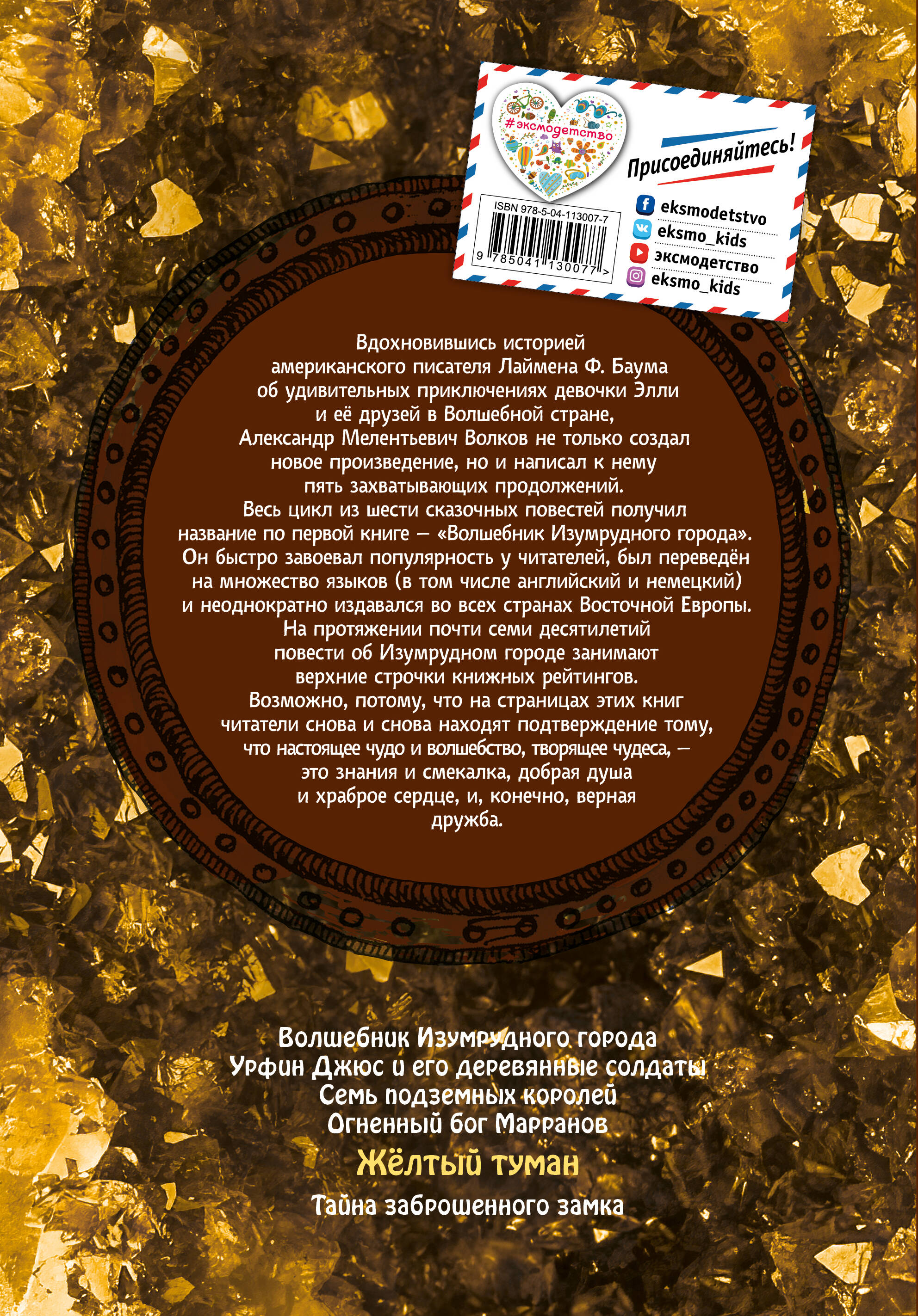 Знаменитый цикл А. М. Волкова «Волшебник Изумрудного города» - в новом оформлении и в новом формате! Приглашаем вас увидеть героев одного из первых фэнтезийных миров в русскоязычной литературе глазами Елены Мельниковой. Персонажи её иллюстраций - яркие, запоминающиеся и очень добрые. Даже главные злодейки - Гингема и Бастинда - вовсе не выглядят страшными. А любимый персонаж, пёсик Тотошка, нарисован практически «с натуры»: моделью для него послужила собачка художницы. Книги рассчитаны на самостоятельное чтение детьми. Их главные достоинства - чёткий средний шрифт, достаточное количество иллюстраций и очень удобный размер. Книги легко помещаются и на книжную полку, и в сумку; их можно читать и за столом, и в дороге или захватить летом на дачу для внеклассного чтения. А немного увеличенная высота и нарядные обложки придают изданиям подарочный вид.| Издательство | ООО "Издательство "Эксмо" |