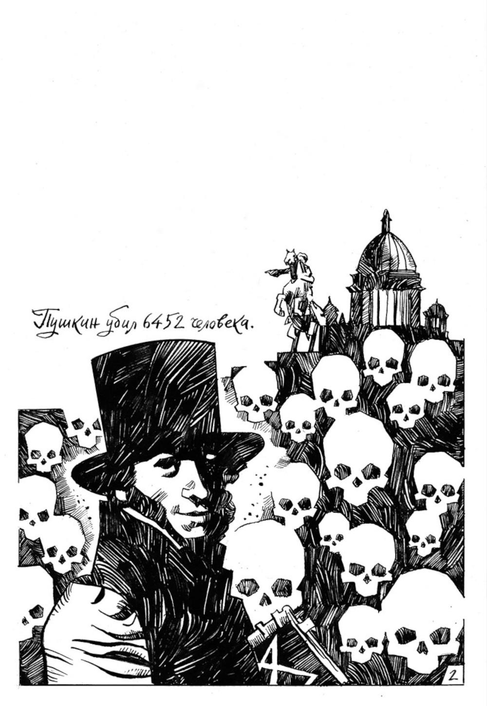 Что, если Дантес убил Пушкина потому, что тот был злым гением, демоном, который хотел уничтожить мир? Что, если Дантес спас нас всех. И что же в комиксе делают Маяковский, Лермонтов, Есенин и Ахматова? Альтернативная реальность, путешествия во времени.