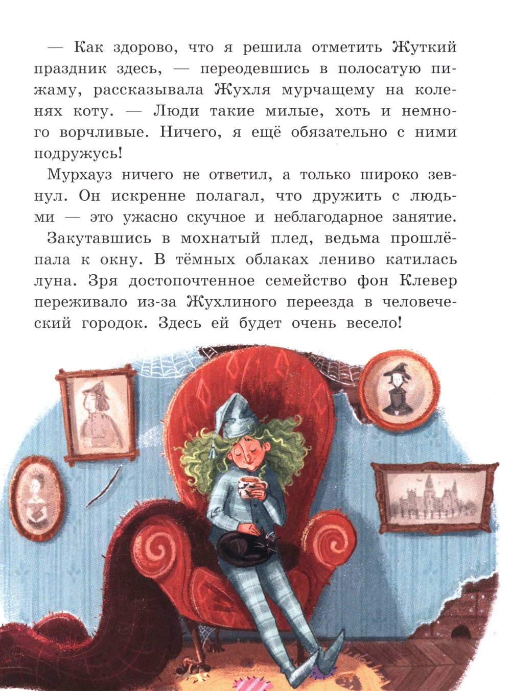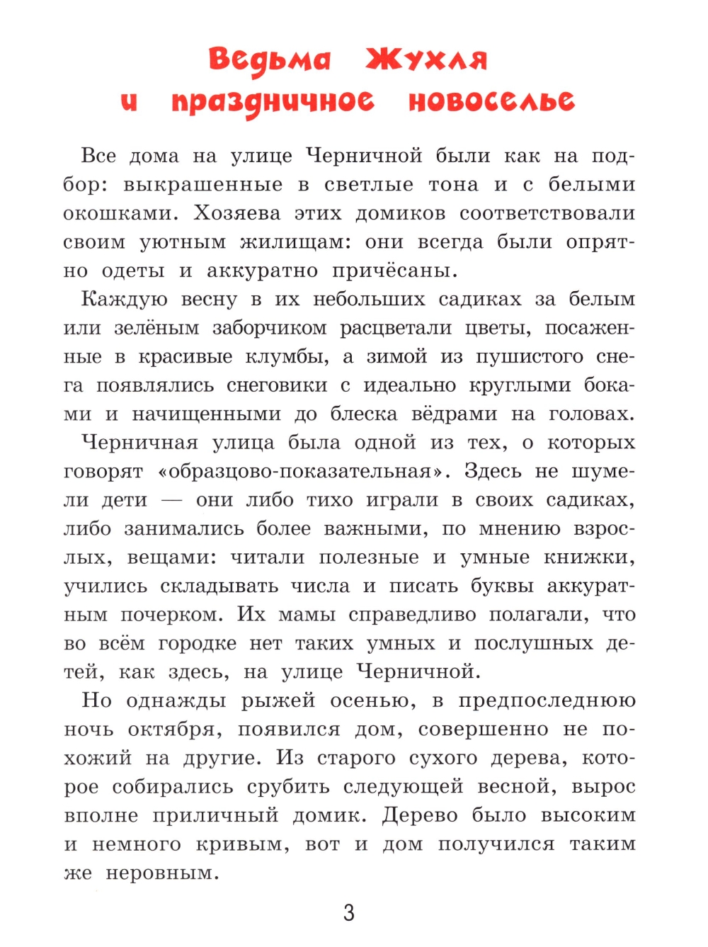 На сладкой Черничной улице живёт совсем не похожая на чинных жителей города старушка Жухля фон Клевер. Потомственная ведьма из достопочтенного семейства колдунов и волшебников фон Клевер. Но не спешите пугаться и заколачивать двери! У Жухли доброе сердце, поэтому её главный девиз - дарить радость другим людям.