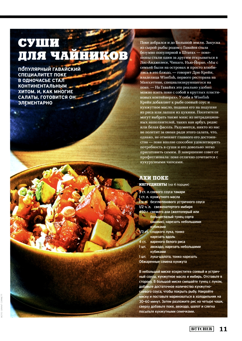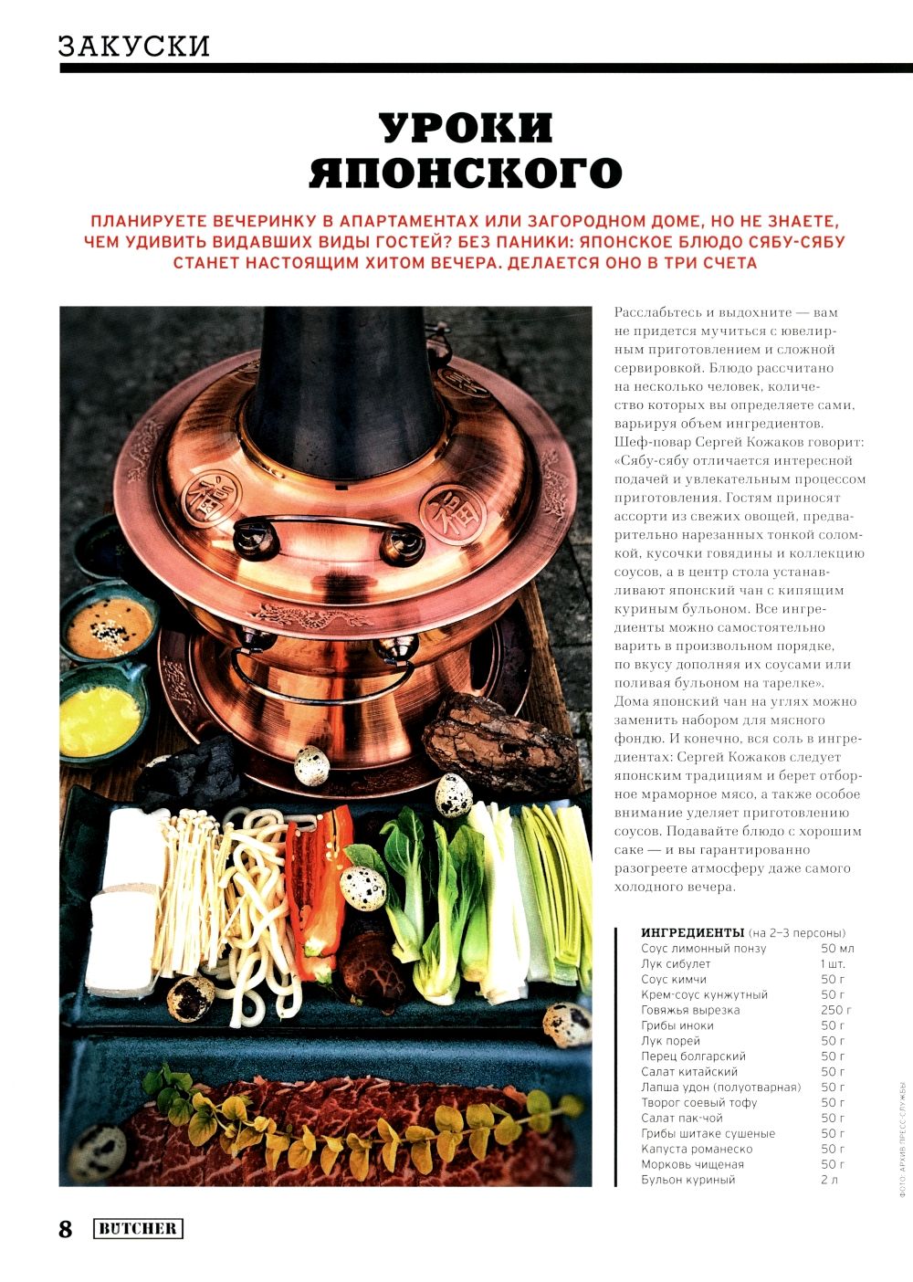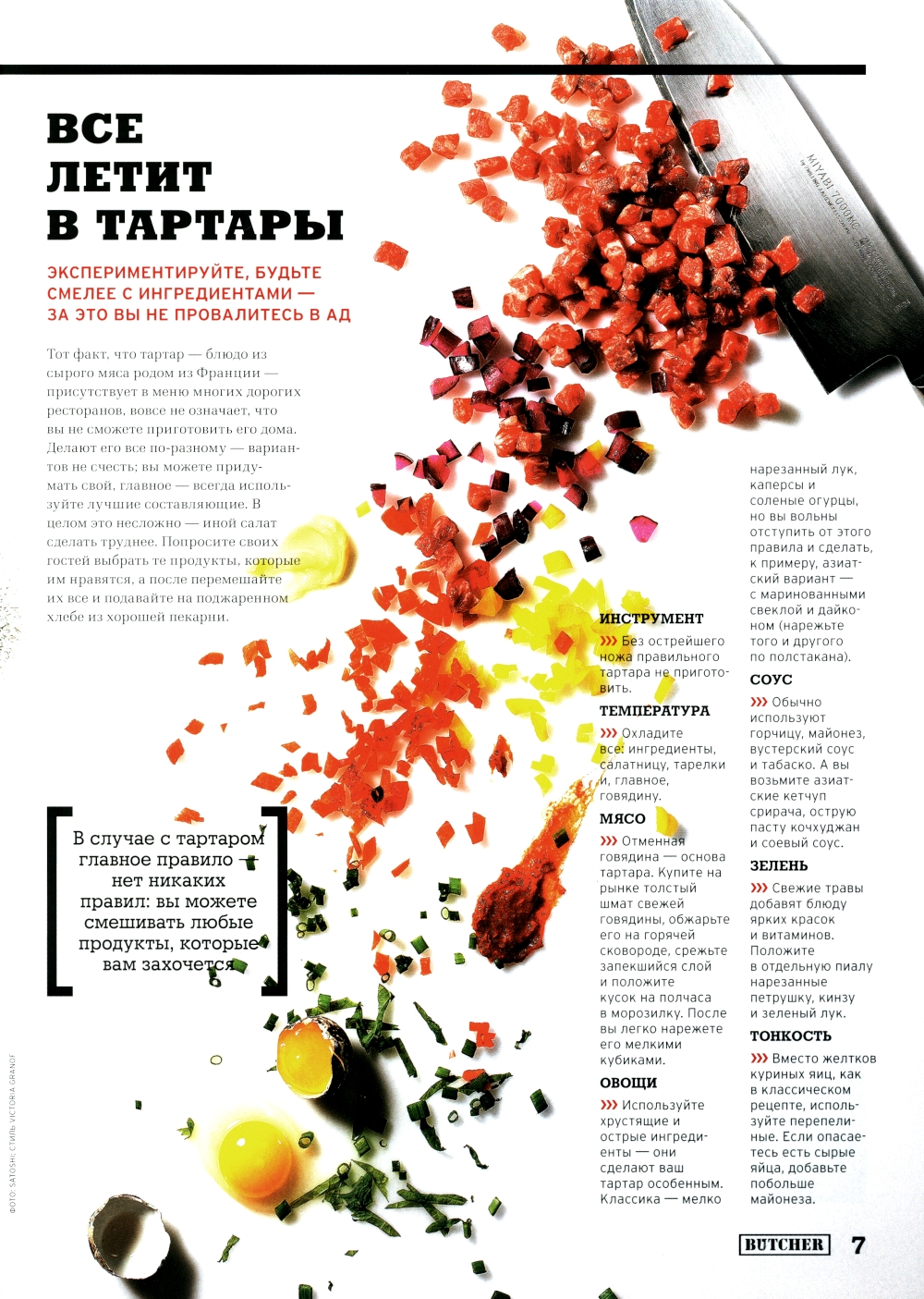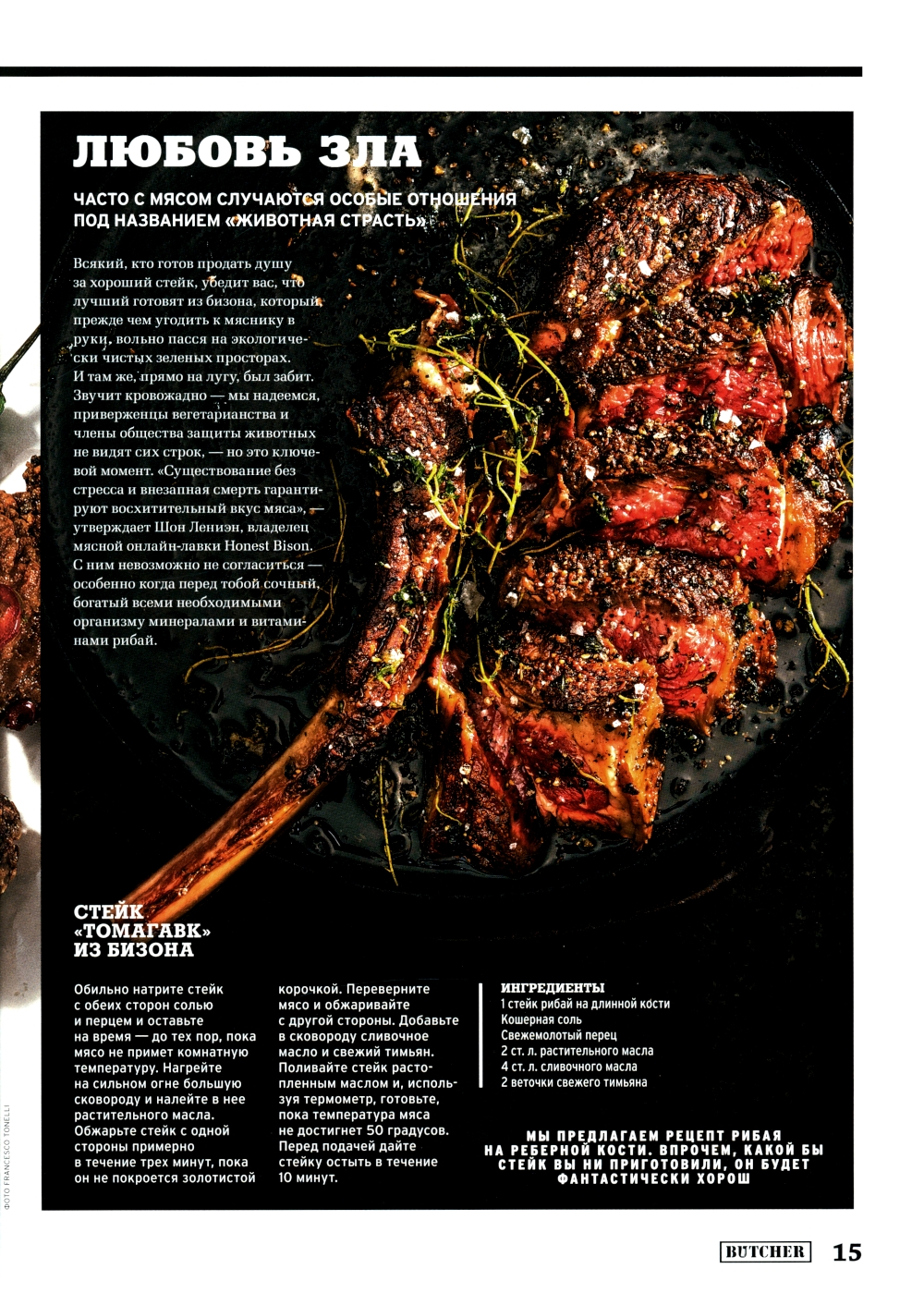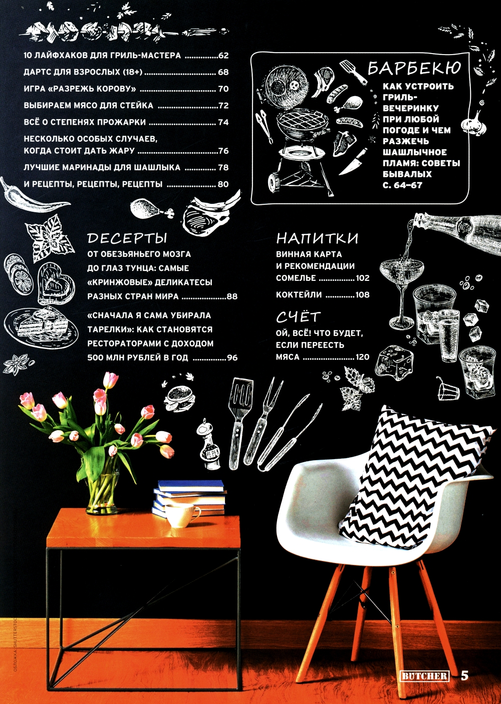 Butcher - это всё о мясе: исторические факты, современные открытия, кулинарные идеи, рецепты и лайфхаки от профессионалов-рестораторов. Каждая страница журнала - увлекательное путешествие в мир вкуса в самых разных его проявлениях. Рецепты аппетитных блюд - лишь верхушка большого мясного айсберга под названием BUTCHER! Наш специальный food-гид - это и ревизии московских рынков в поисках идеального куска говядины, и все нюансы науки стейкологии - от правил розжига огня до степеней прожарки, и обзоры самых уникальных ресторанов мира, и истории людей, которые были веганами, но снова вернулись к мясоедению. Ведь как было метко сказано в сериале «Кухня», любое вегетарианское блюдо вкуснее с мясом!| Издательство | ИД Бурда |