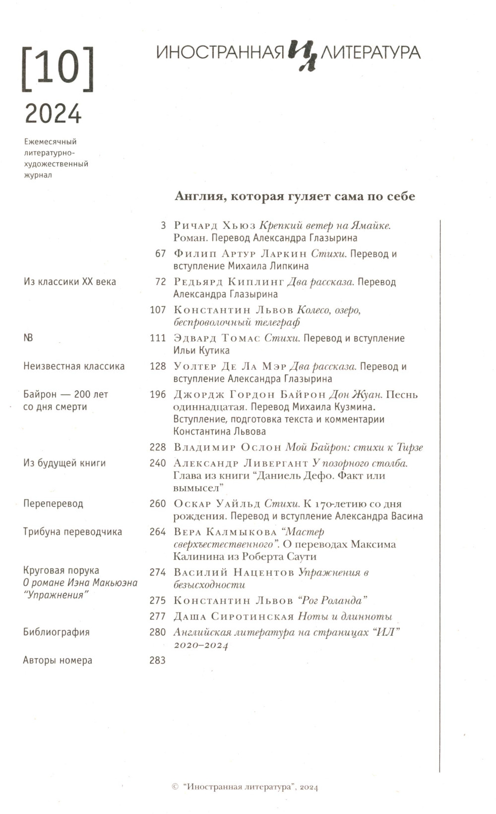 Аннотация: Журнал "Иностранная литература" № 10 2024 г