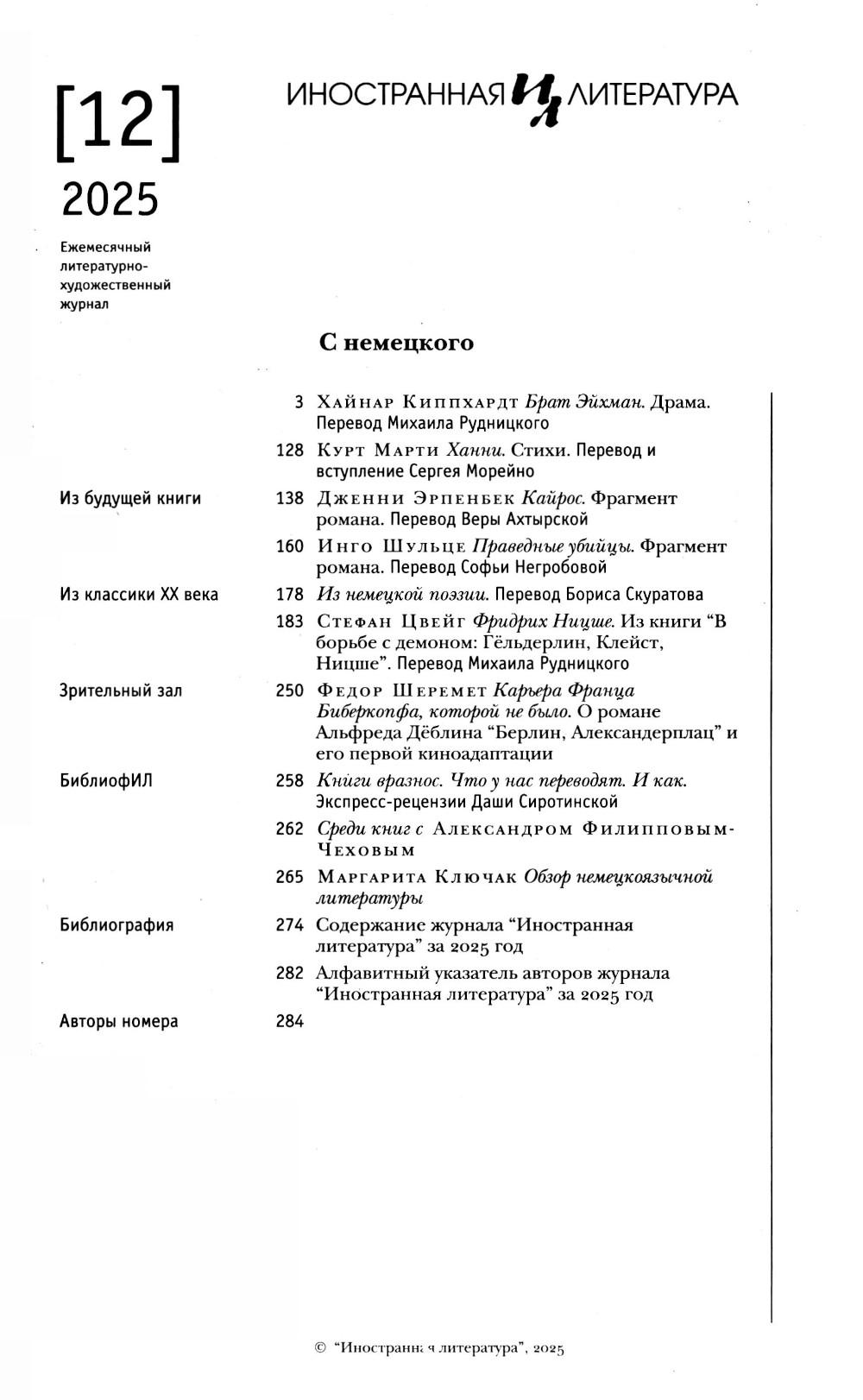 Журнал "Иностранная литература" № 12 2025 г