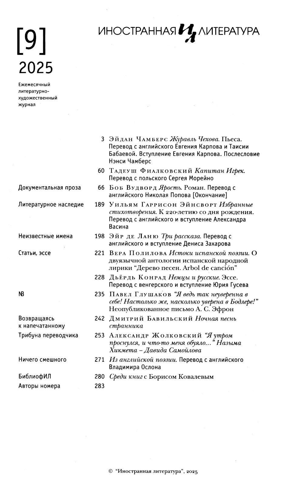 Аннотация: Журнал "Иностранная литература" № 9 2025 г