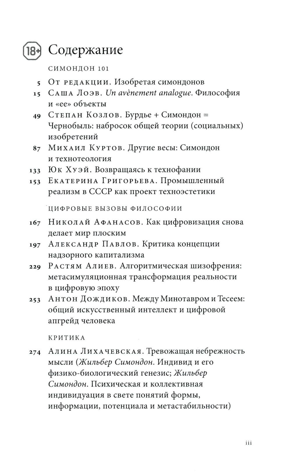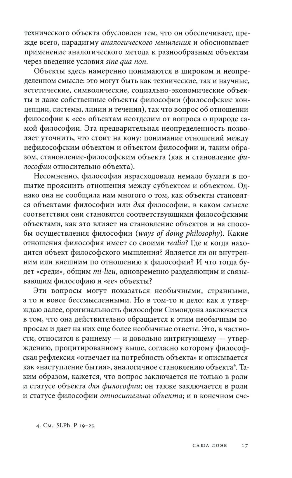 Этот номер - не введение и не словарь, а попытка трансдуктив-ной работы с философией Симондона. Его задача - показать, как группы симондоновских концептов оказываются задействованы и обогащены в разных проблемных областях, не всегда совпадающих с точками интересов самого Симондона: в исследованиях советского промышленного реализма (Екатерина Григорьева), техноэстетике (Юк Хуэй), теории социальных изобретений (Степан Козлов), технотеологии (Михаил Куртов) и рефлексивной философии самого Симондона (Саша Лоэв). Из-за вышеописанной множественности и полисемантичности философской системы Симондона в каждом из представленных ниже текстов «Симондона» нужно конструировать заново: поэтому номер, который вы держите в руках, лучше всего описать как «неполный каталог симондонов» - одновременно историко-философских реконструкций и техник применения симондоновской философии. Возможно, лучший способ прояснить роль Симондона в текстах, приведенных в этом номере, - это предложить перечисление симондонов, которых можно встретить на его страницах.| Издательство | ИД Высшей школы экономики |