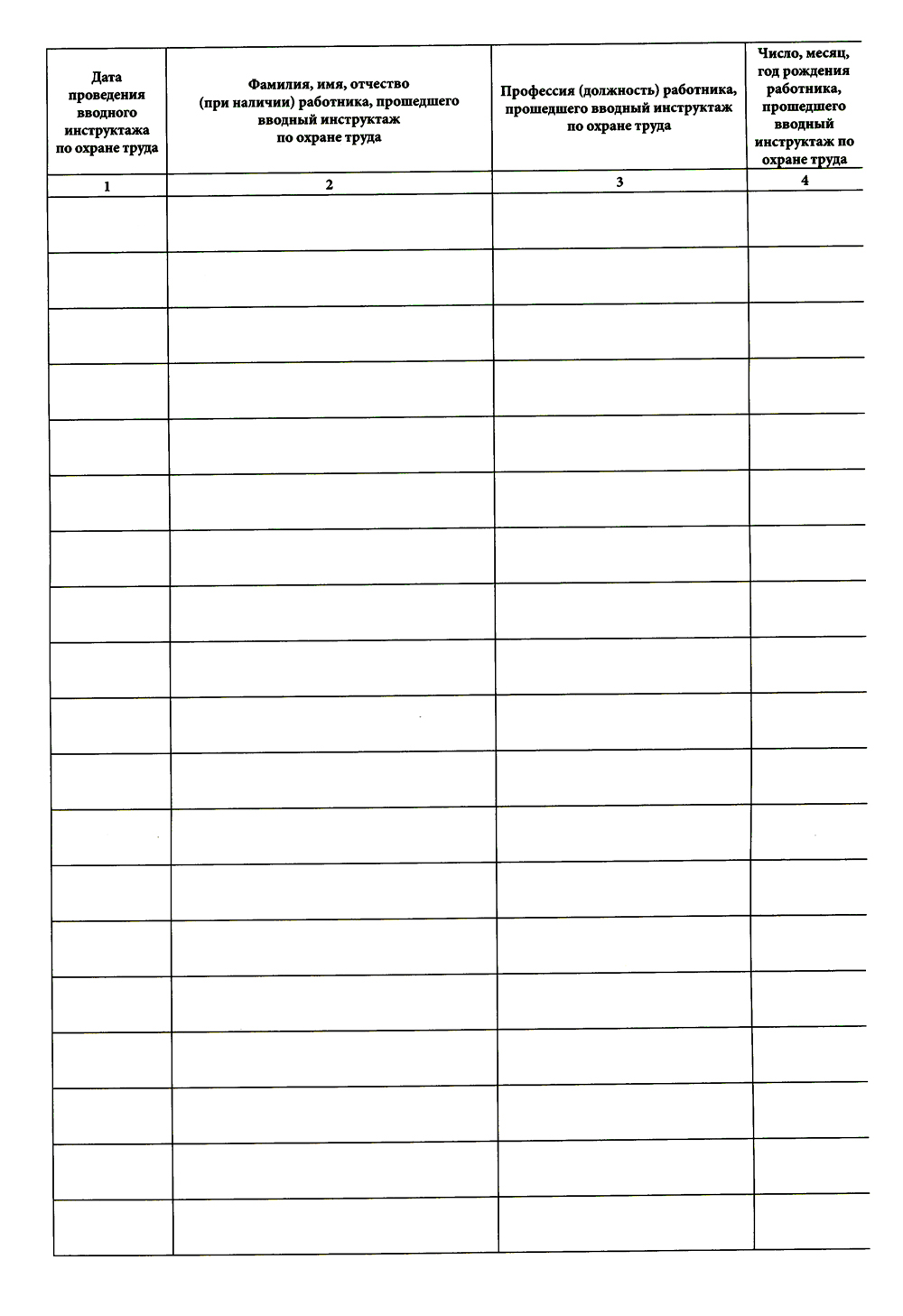 Журнал регистрации вводного инструктажа