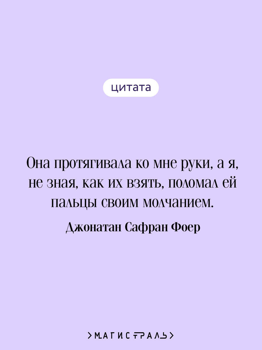 Джонатан Сафран Фоер - автор мирового бестселлера «Полная иллюминация», экранизированного в 2005 году с Элайджей Вудом в главной роли. «Жутко громко& запредельно близко» - его второй роман, ставший лучшей книгой года по версии New York Times Bestseller. Роман Фоера «Жутко громко и запредельно близко» - это трогательная, глубокая, искренняя и щемящая сердце история, рассказанная 9-летним мальчиком, отец которого погиб в одной из башен-близнецов 11 сентября 2001 года. «Это роман, где балансируют: юмор и трагедия, разрушение и созидание, Нечто и Ничто, жизнь и смерть». - Дж.С. Фоер Роман экранизирован в 2012 году с Сандрой Буллок и Томом Хэнксом в главных ролях. «В смешном, нежном, трагичном и изящно построенном романе Джонатана Сафрана Фоера "Жутко громко и запредельно близко" есть озорство и живость безудержного детского воображения и одновременно пронзительная детская боль. Фоеровскому Оскару Шеллу всего девять, но ему уже довелось столкнуться с катастрофами современности и доказать свою неповторимость». - Синтия Озик «Второй роман Джонатана Сафрана Фоера оправдывает все возлагавшиеся на него надежды. В нем есть амбиция, виртуозность исполнения, головоломки, но главное - во всем, что касается изображения осиротевшего Оскара - невыносимая пронзительность. Сильнейшие эмоции потрясают по-настоящему, а не понарошку. Выдающееся литературное достижение». - Салман Рушди «Фоер - определенно новый тип литературного воина - виртуозный, фантастический, гениальный, веселый, разбивающий сердце. Он послал стрелы огненной силы на страницы своего романа». - Village Voice| Издательство | ООО "Издательство "Эксмо" |