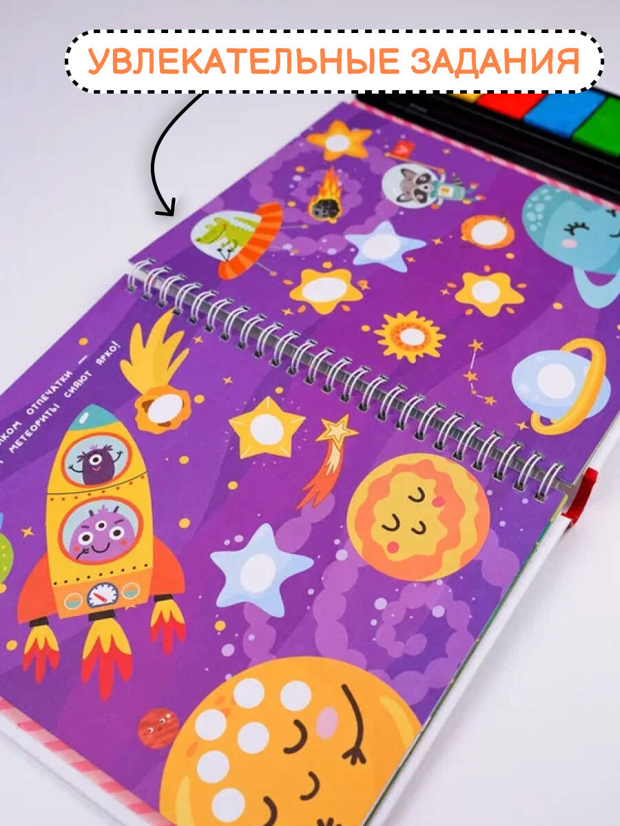 «Жужа и Капа. Рисуем пальчиками. Раскраска с заданиями» - это отличная развивающая книга с красивыми рисунками и любимыми героями. К творчеству всё готово - к картонной обложке приклеен пластиковый лоток со штемпельными подушками-губками, пропитанными краской. 7 цветов: красный, синий, зелёный, жёлтый, оранжевый, розовый, фиолетовый. Краски легко смываются мыльной водой или влажными салфетками. Книга на спирали, поэтому листы легко перекидываются из стороны в сторону, открываясь на 360 градусов. Книга небольшого формата - можно взять с собой в дорогу, на дачу, в путешествие. На 64 плотных листах ребёнок сможет раскрасить картинки пальчиками, дорисовать карандашом или создать собственные шедевры. Свобода самовыражения - лучший способ активизировать творческие способности. Ребёнок получит новый тактильный опыт, исследуя на ощупь текстуру бумаги и красок. Занятия с мамой способствуют формированию социальных связей. Процесс рисования, в котором ребёнок выражает свои чувства без слов, выполняет функцию антистресса. Интерактивная развивающая раскраска станет прекрасным подарком для мальчиков и для девочек на день рождения или Новый год. Рисование пальчиками - это увлекательная и полезная сенсорная игра, развивающая мелкую моторику, внимание, усидчивость, координацию движений, пространственное мышление, фантазию и творческие способности.| Издательство | Издательство "АСТ" |