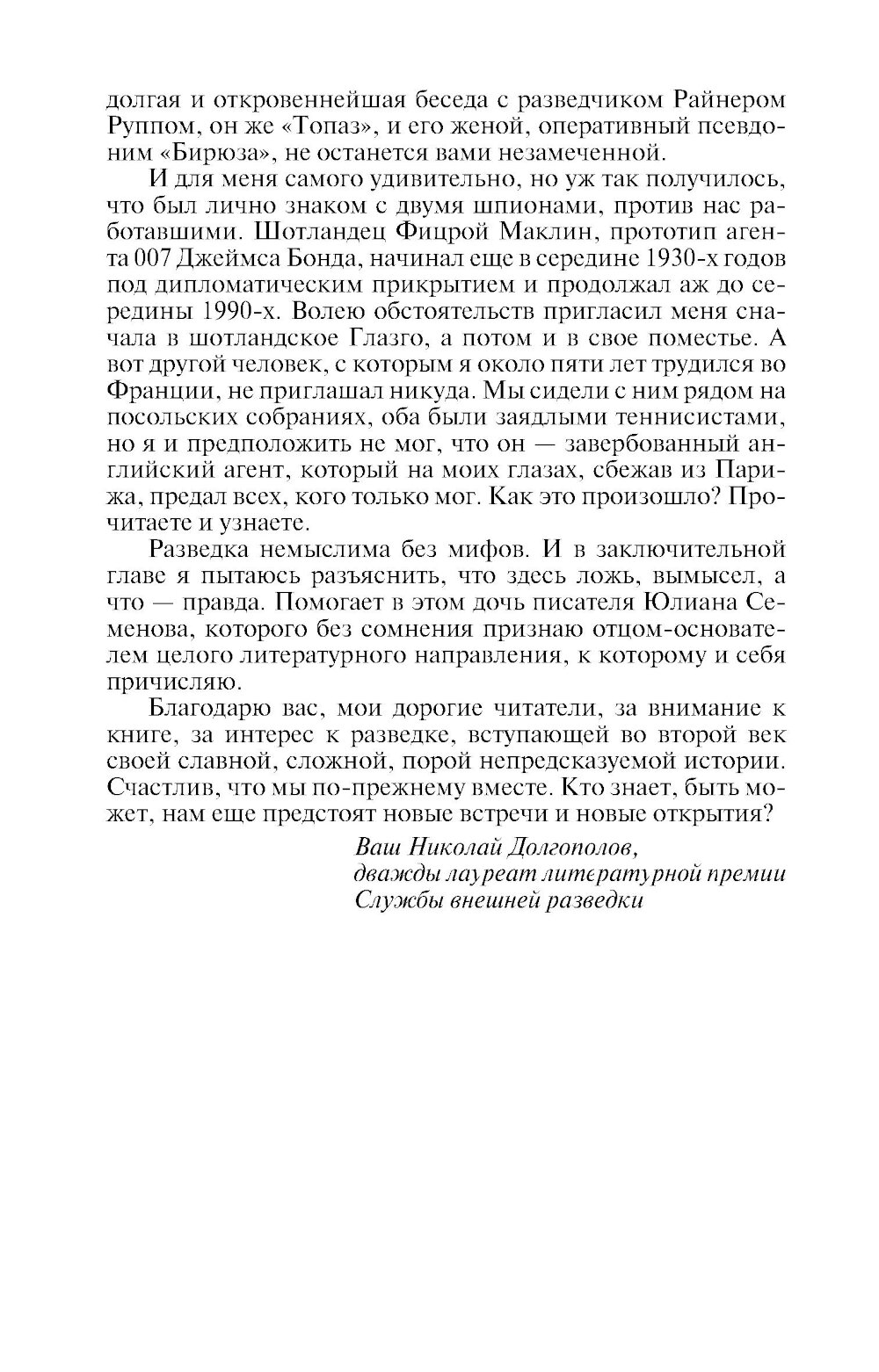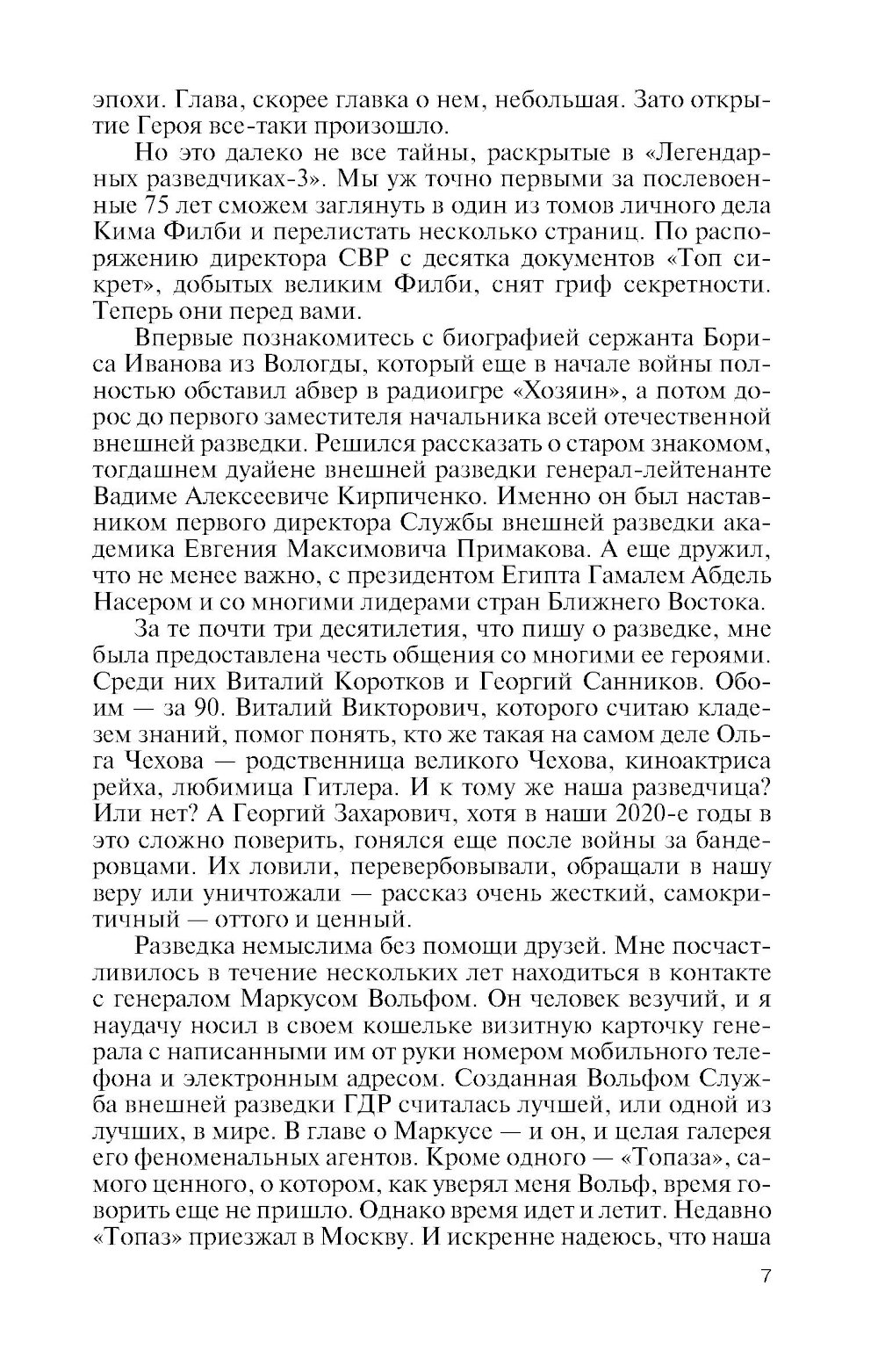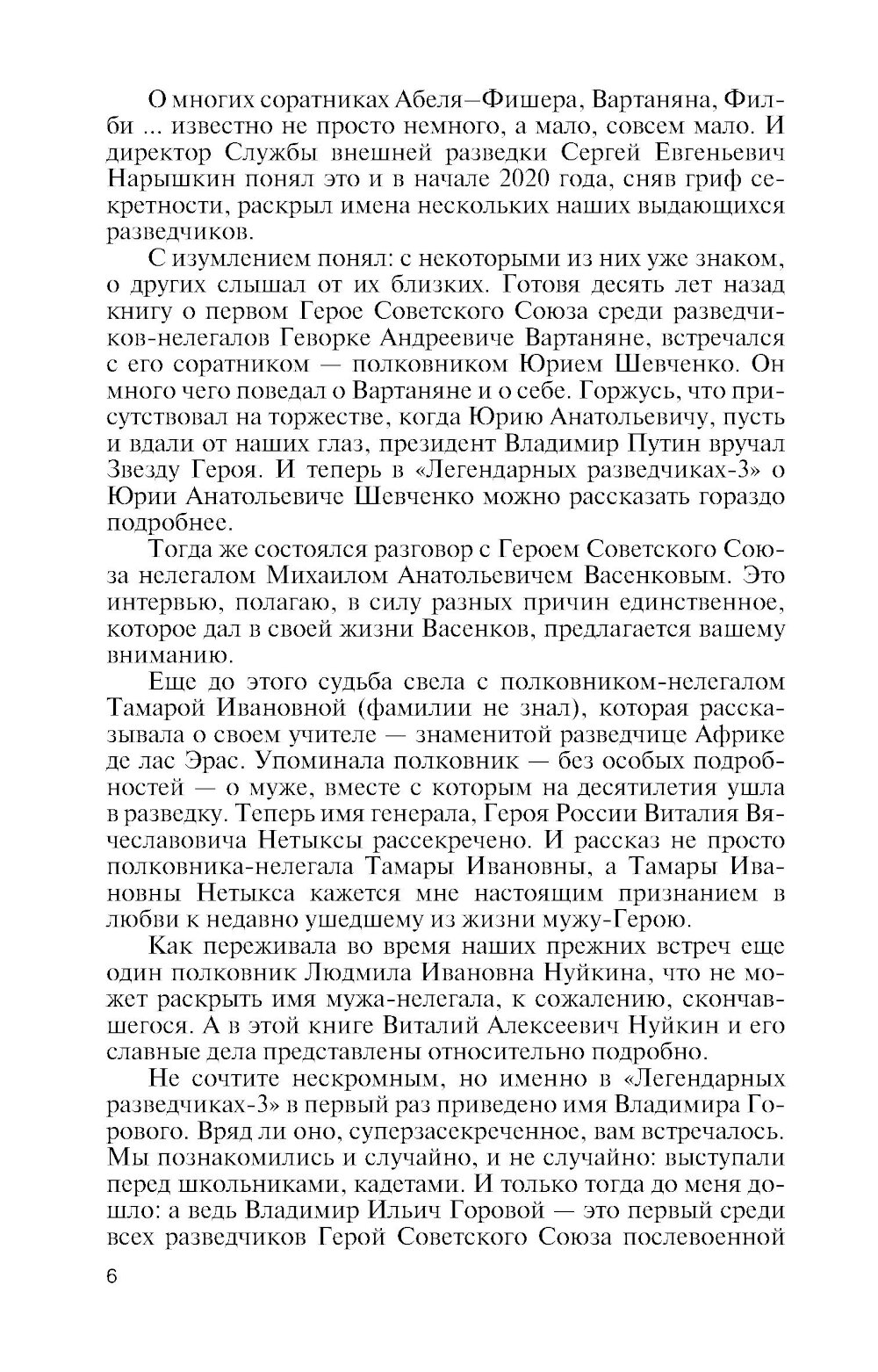 Книга известного автора посвящена 100-летию создания отечественной внешней разведки ИНО - ПГУ - СВР. Главная ее особенность: новые, только что открытые герои, в основном разведчики-нелегалы. Некоторых из них, а также их жен и боевых спутниц автор знал лично. Вы познакомитесь с Героем Советского Союза Михаилом Васенковым, ушедшим в разведку еще во второй половине 1970-х, с Героями России Юрием Шевченко и Виталием Нетыксой и несколькими другими выдающимися разведчиками, чьи подвиги буквально до последних месяцев были под грифом «Совершенно секретно», узнаете имя первого послевоенного Героя Советского Союза среди разведчиков. Специально для этой книги частично рассекречены личное дело великого Кима Филби и добытые им важнейшие документы. Вам будет представлен таинственный нелегал из Берлина, работавший под оперативным псевдонимом «Топаз», о котором знаменитый генерал Маркус Вольф (и он присутствует в этой книге) говорил, что его настоящее имя никогда не будет предано огласке, а автор приводит откровеннейшую исповедь этого фантастического разведчика. В Шотландии автор общался с прототипом Джеймса Бонда - сэром Фицроем Маклином, который под прикрытием дипломата работал в Москве еще в 1930-е годы и закончил свою успешную деятельность в 1990-х годах.| Издательство | Молодая гвардия |
