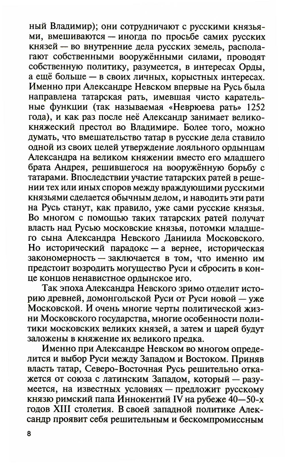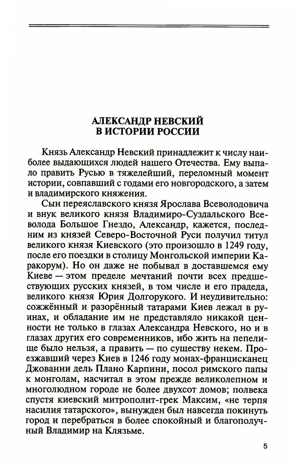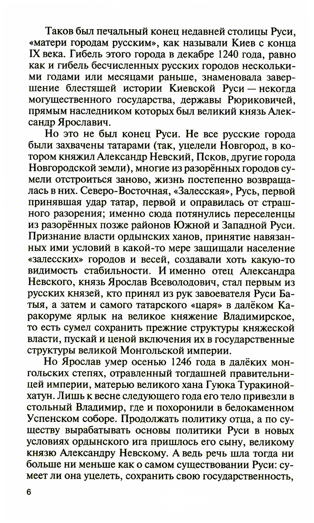 Князь Александр Невский принадлежит к числу наиболее выдающихся людей нашего Отечества. Полководец, не потерпевший ни одного поражения на поле брани, он проявил себя и как мудрый и осторожный политик, сумевший уберечь Русь в тяжелейший, переломный момент её истории, совпавший с годами его новгородского, а затем и владимирского княжения. Автор постарался собрать в книге по возможности все свидетельства источников, касающиеся личности князя Александра Ярославича и проводимой им политики, выстроив таким образом подробную хронику сорока четырёх лет земной жизни великого князя. Именно подлинные документы эпохи и составили основу повествования. Большое внимание уделено также истории посмертного прославления князя, превратившегося со временем в одного из главных небесных покровителей России. Новое издание книги существенно доработано автором.| Издательство | Молодая гвардия |