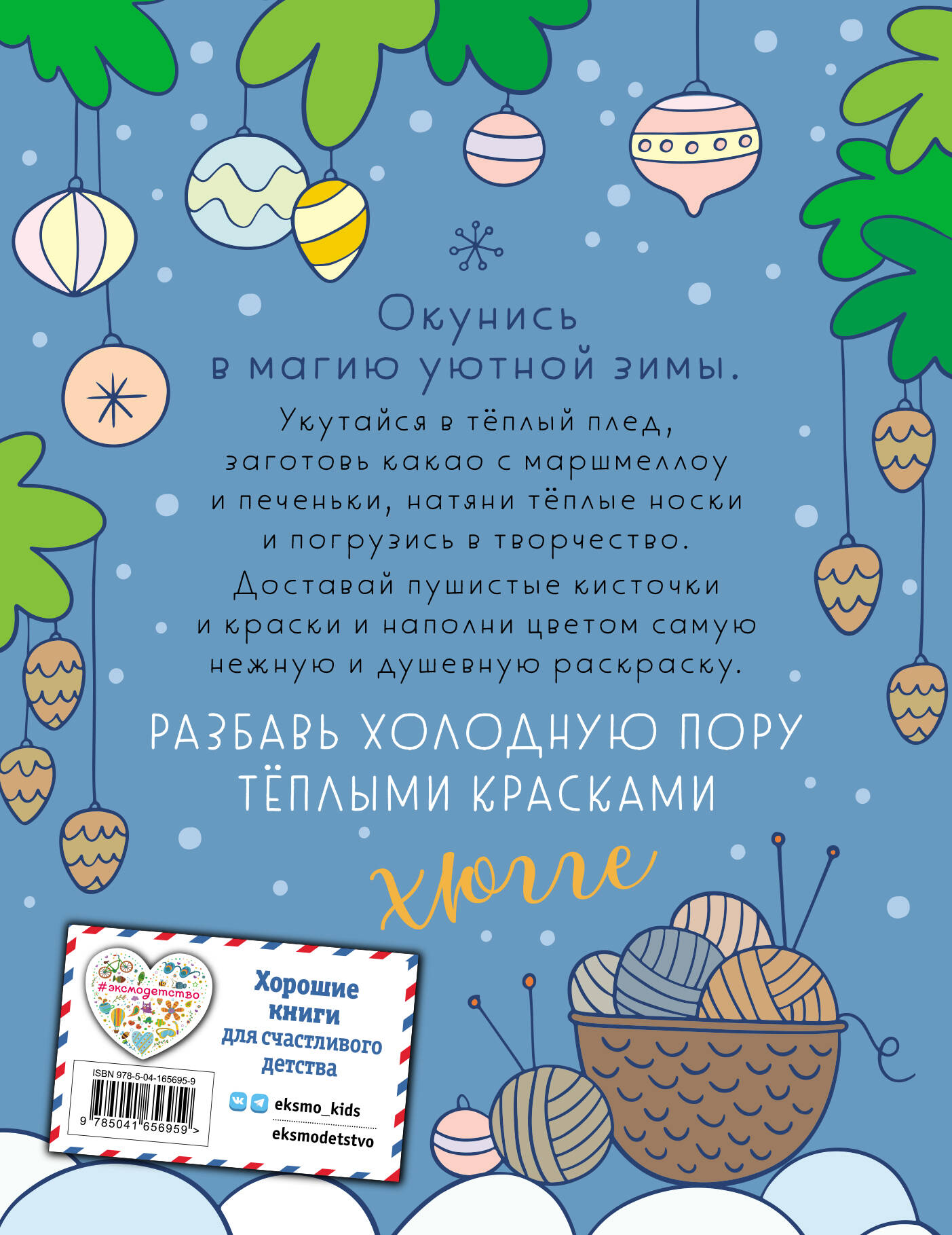 Кто это распивает горячее какао под ёлочкой и кутается в тёплый шарф? А чьи это лапки торчат из-под мягкого пледика? Ой, а зачем лисичке полосатая шапочка и свитер с олениками? Это всё лесные зверики готовятся к холодам и не готовы уступать хмурой погоде и мрачному настроению в стиле хюгге. Насладитесь зимним спокойствием и согревающим теплом с нашей уютной и позитивной раскраской, с любовью созданной художницей Надеждой Барковой. Дарите краски чудесному лесному мирку, читайте вдохновляющие статусы и творите в нашей мини-мастерской, где рождается настоящая феерия цвета! Раскрашивайте звериков: им так приятно внимание! Погладьте их мягкой кисточкой, почешите за ушком карандашиками и наполните красками мир тепла и оптимизма! Вам не устоять перед желанием завернуться в плед и смаковать какао вместе с этой раскраской!| Издательство | ООО "Издательство "Эксмо" |