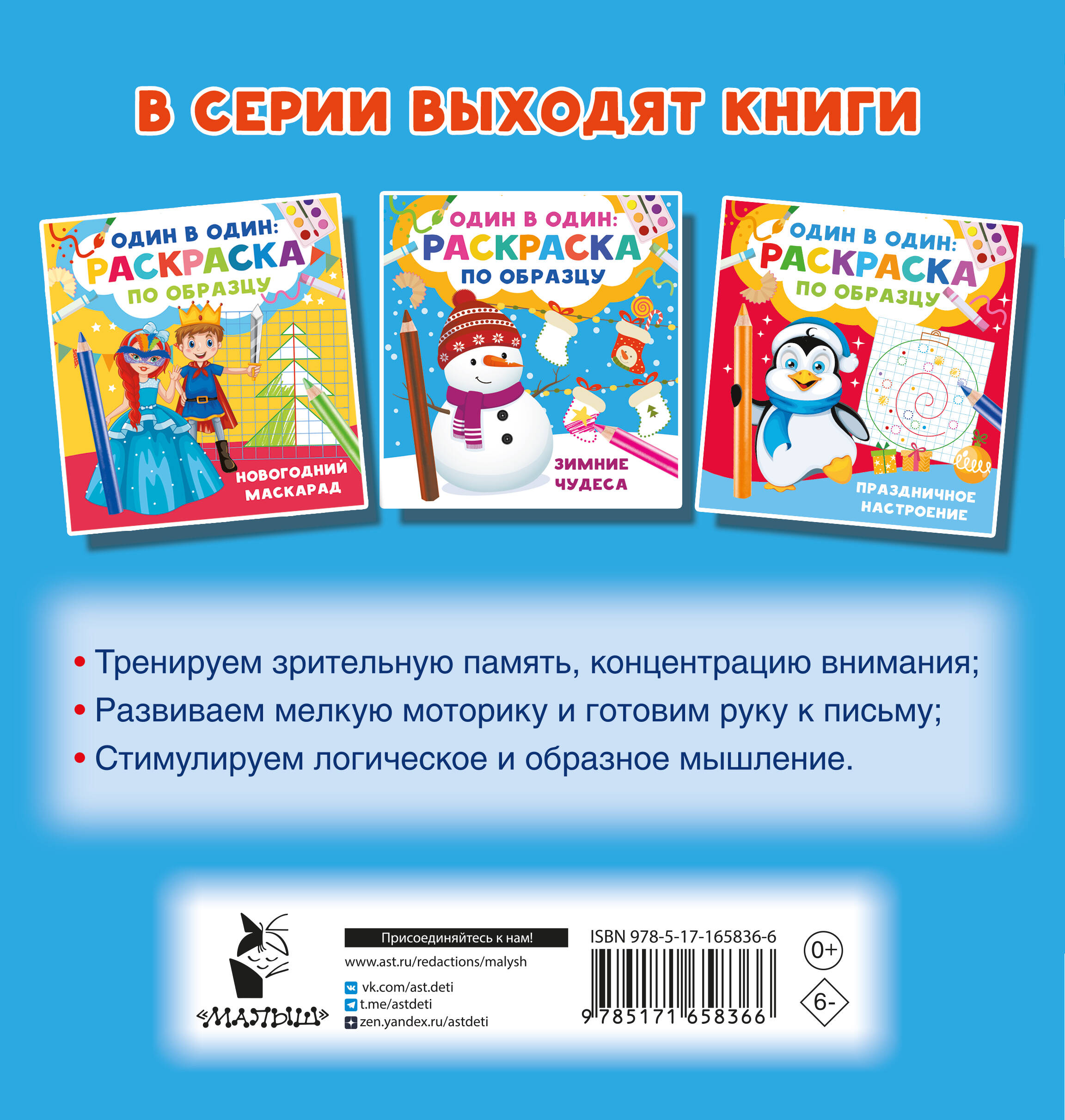 Все дети любят рисовать и раскрашивать - малышам обязательно понравится серия «Один в один: раскраска по образцу». Чудесная книжка посвящена главному зимнему празднику - Новому году. Крупные картинки по клеточкам и точкам, сравнилки, дорисовашки, находилки - всё что нужно для весёлых игр с карандашами, мелками, фломастерами и красками. Раскраска «Зимние чудеса» понравится ребятам, которые с нетерпением ждут новогодних каникул и Дедушке Морозу в подарок хотят нарисовать много-много новогодних рисунков. Находя сходства и отличия, «оживляя» картинки-головоломки, дорисовывая новогодние лабиринты, малыши не только весело проведут время, но и смогут развить наблюдательность и логику, фантазию. Забавные иллюстрации поднимут настроение и создадут для компании малышей атмосферу праздника. Эта необыкновенная книжка новогодних игр и заданий подарит вашему ребёнку множество приятных минут!| Издательство | Издательство "АСТ" |