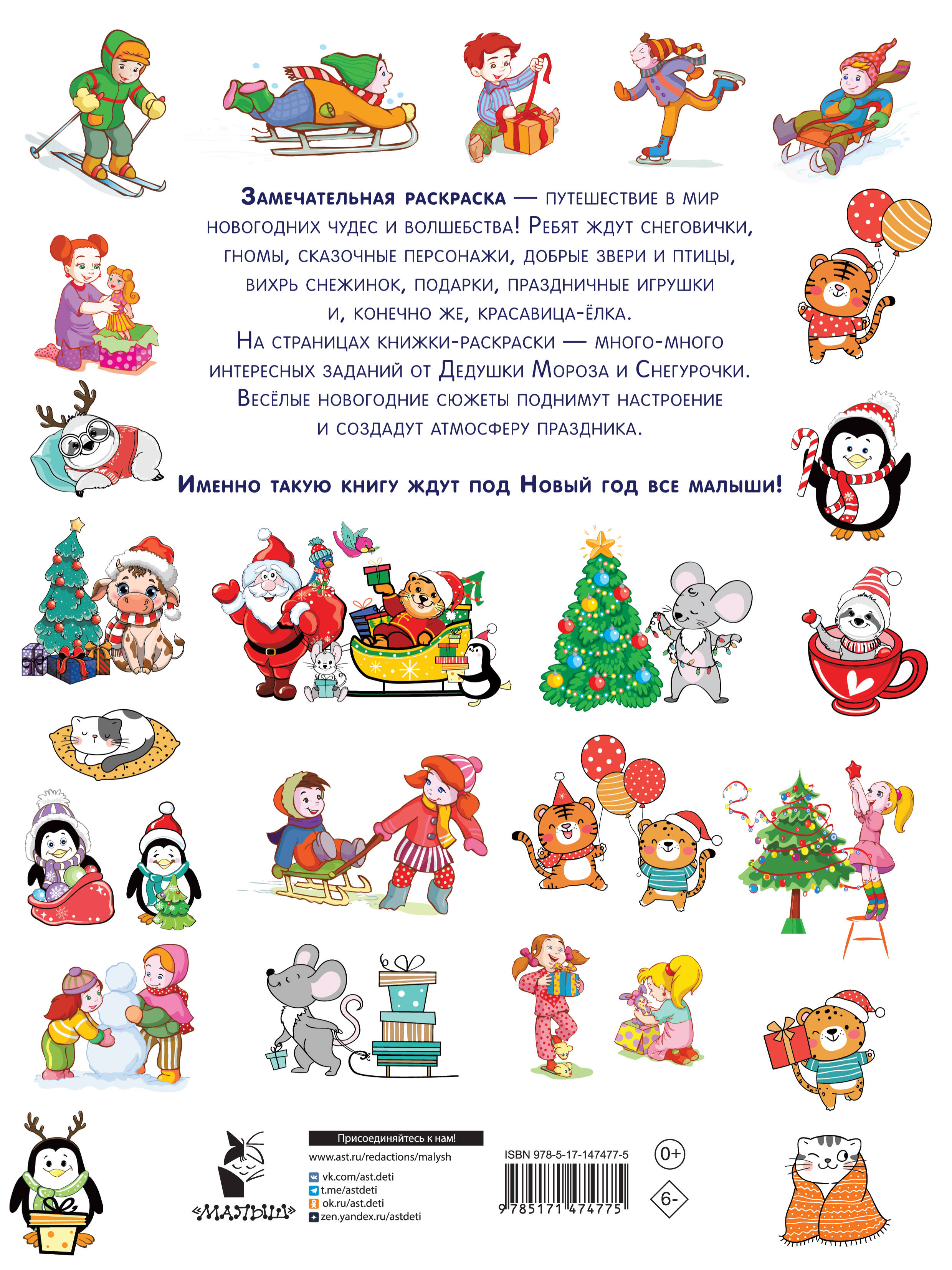 На каждой странице книги много-много милых и забавных рисунков + классные развивающие задания. Всё самое лучшее - новогодние игрушки, подарки, вкусные лакомства можно долго рассматривать, играть с картинками в «Найди и раскрась», «Найди различия», считать «спрятанные» Дедом Морозом предметы, выполнять творческие задания и веселиться от души. Книжка-игра понравится ребенку, который с нетерпением ждет новогодних каникул. Именно такую книгу ждут под Новый год все малыши!| Издательство | ИЗДАТЕЛЬСТВО "АСТ" |