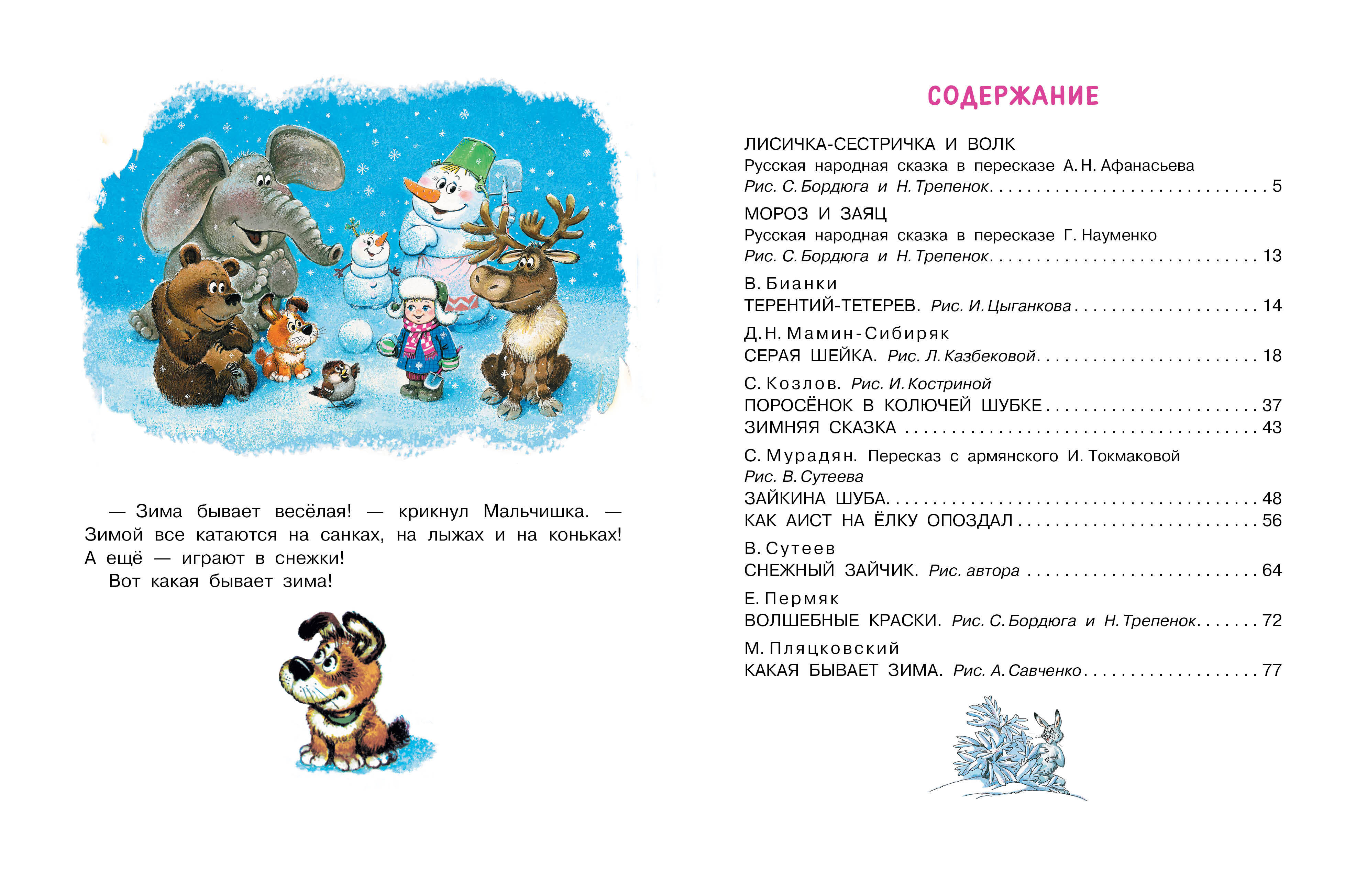 Зима - одно из самых волшебных и таинственных времён года. Не зря о ней написано столько произведений. Известные классики - В. Бианки, С. Козлов, В. Сутеев, М. Пляцковский и другие - также были очарованы этой снежной порой и придумали о ней свои сказки. Главные герои - животные и ребята - радуются зиме, рассуждают о том, какая она бывает, и, конечно же, загадывают желания. Ну а самый главный - Дед Мороз - эти желания исполняет!| Издательство | Издательство "АСТ" |