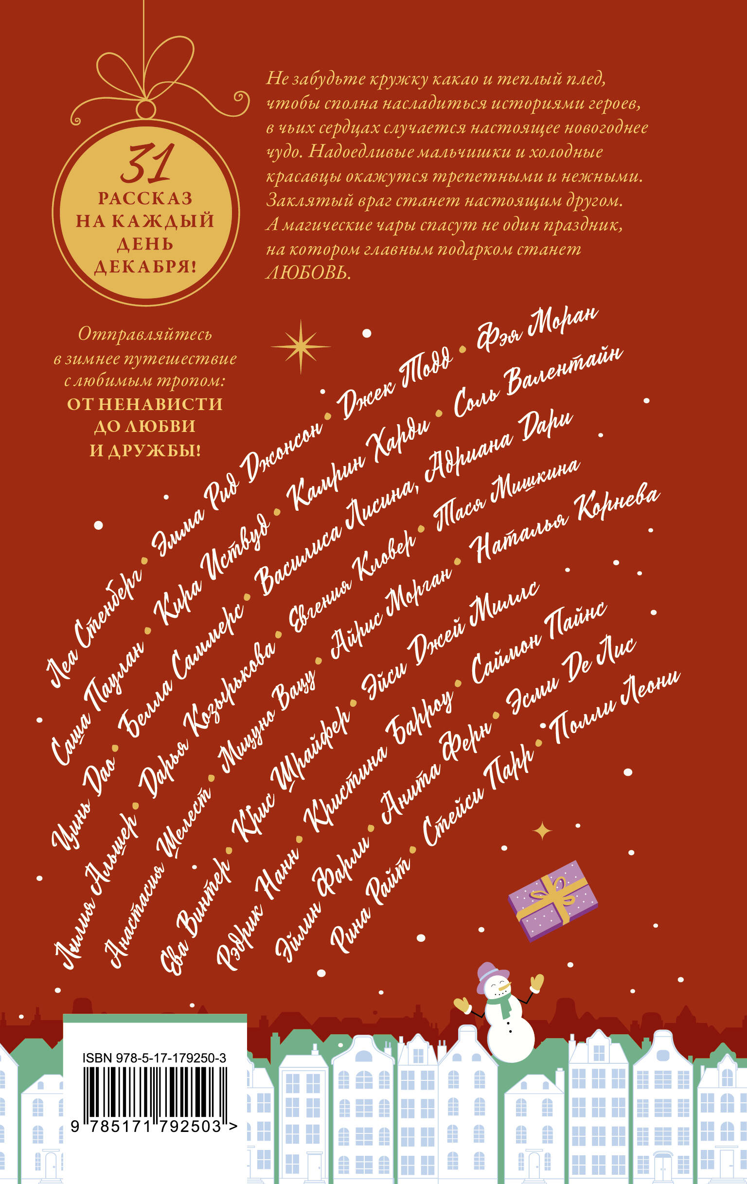 31 рассказ на каждый день декабря! Отправляйтесь в зимнее путешествие с любимым тропом: от ненависти до любви и дружбы! Не забудьте кружку какао и теплый плед, чтобы сполна насладиться историями героев, в чьих сердцах случается настоящее новогоднее чудо. Надоедливые мальчишки и холодные красавцы окажутся трепетными и нежными. Заклятый враг станет настоящим другом. А магические чары спасут не один праздник, на котором главным подарком станет ЛЮБОВЬ.| Издательство | Издательство "АСТ" |