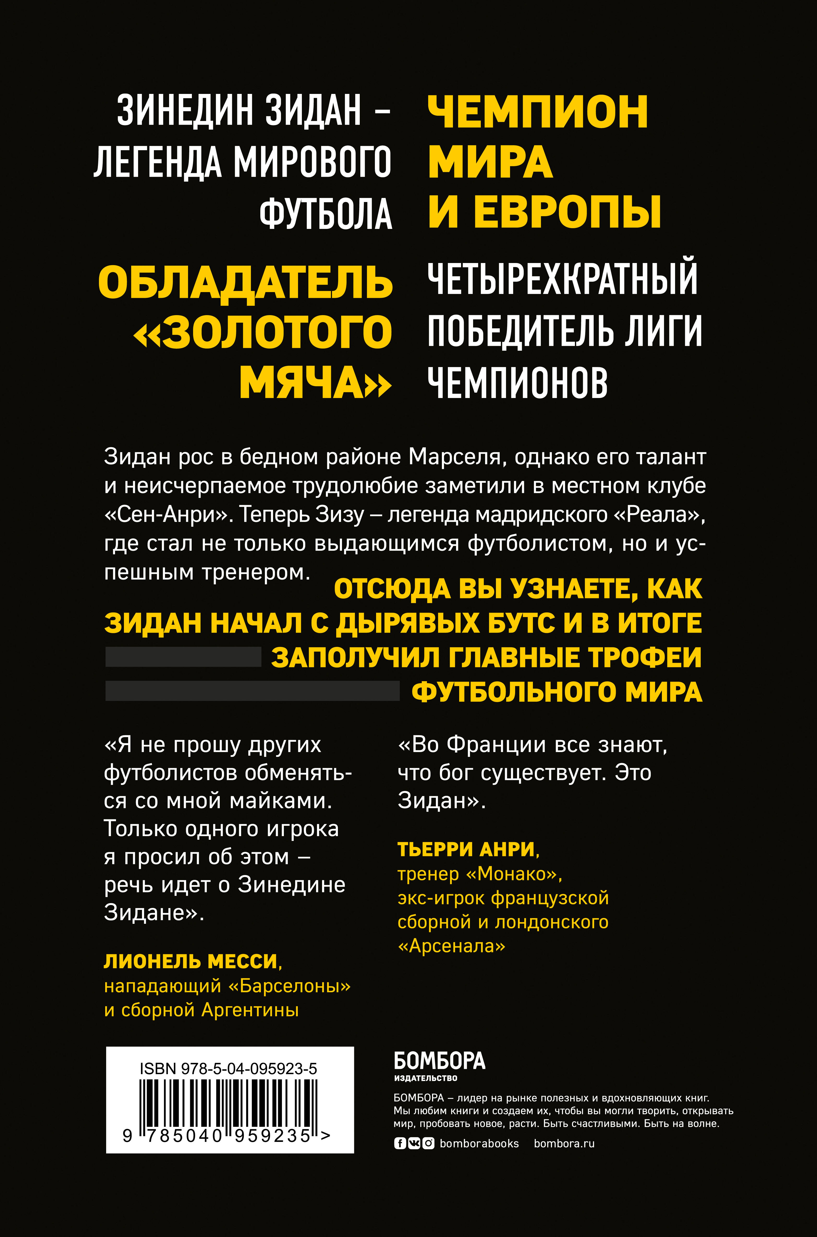 Зинедин Зидан - легенда мирового футбола. Чемпион мира и Европы. Обладатель «Золотого мяча». Четырехкратный победитель Лиги чемпионов. Авторы книги Жан Филипп и Патрик Форт составили разносторонний портрет одного из лучших спортсменов мира. Вместе с ними вы окажетесь на улочках района Ла-Кастеллан, проследите за трансфером Зидана из скромного «Сетем-ле-Валлона» в первый по-настоящему профессиональный клуб - «Канн» - и в итоге окажетесь на вершине футбольного Олимпа с кубком Лиги чемпионов в руках.| Издательство | ООО "Издательство "Эксмо" |