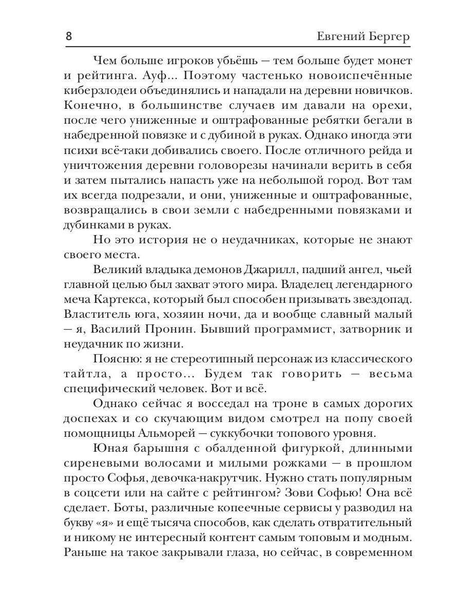 Великая сага о буднях и злоключениях владыки демонов и бывшего хакера, который отбывает срок в компьютерной игре с блек-джеком и демонессами! Весело? Здорово? «А чё такого»? Ага... Щаз-з... Сладкая жизнь хозяина локации под угрозой. И чтобы победить, вам понадобится выпивать каждый день перед сном стаканчик... «развернуть, чтобы читать дальше».| Издательство | Т8 RUGRAM |